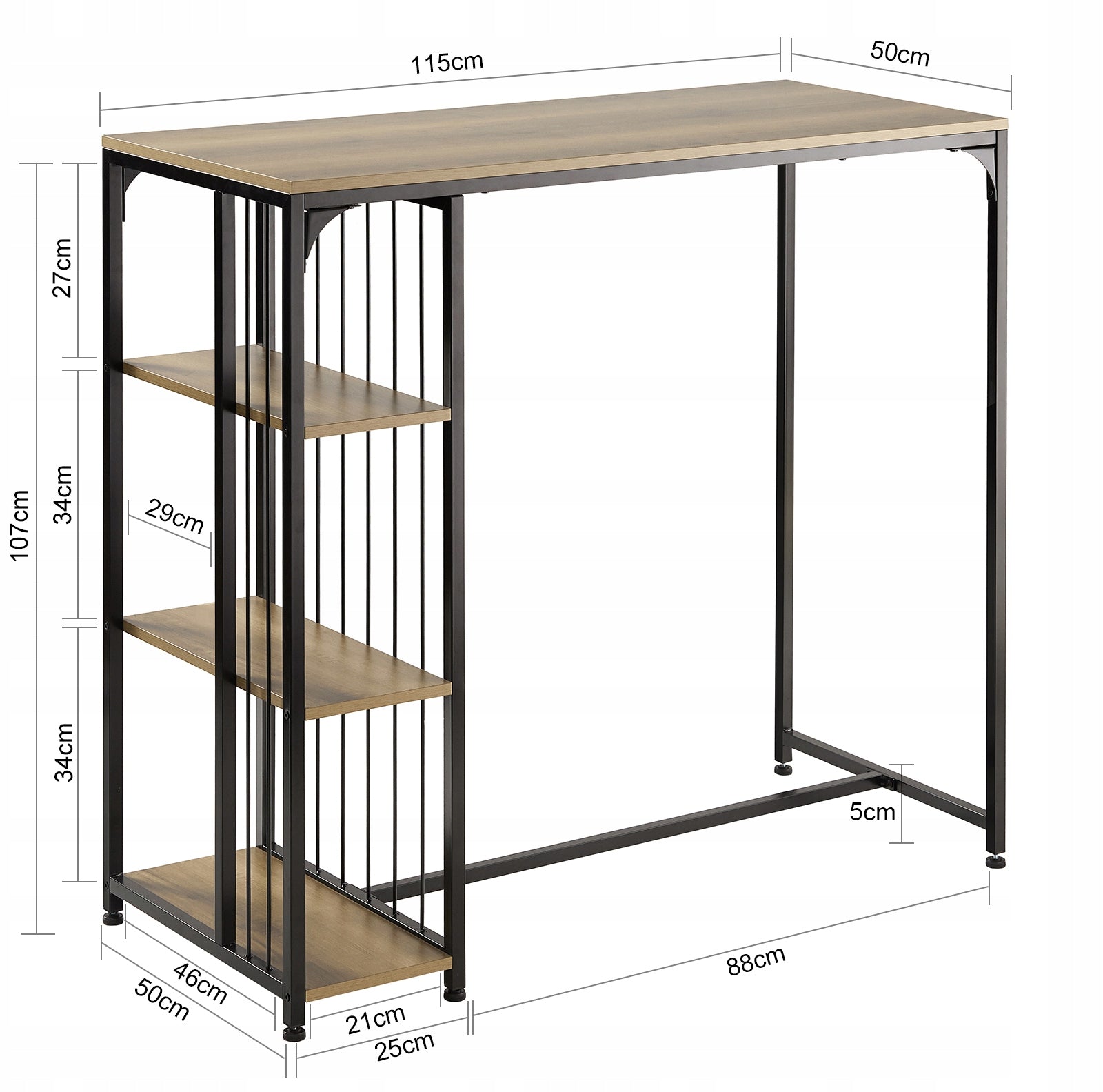 Svajojate apie savo asmeninį, stilingą baro kampelį namuose? Dabar tai įmanoma su mūsų industrinio stiliaus baro stalu! Šis modernus virtuvės stalas yra puiki alternatyva mažesniems būstams ir idealiai tiks valgomajame, virtuvėje ar svetainėje. Jo tvirtos kojos ir ąžuolo spalvos stalviršis suteikia elegantišką ir nesenstantį charakterį, kuris puikiai dera prie įvairių interjero dizainų.
