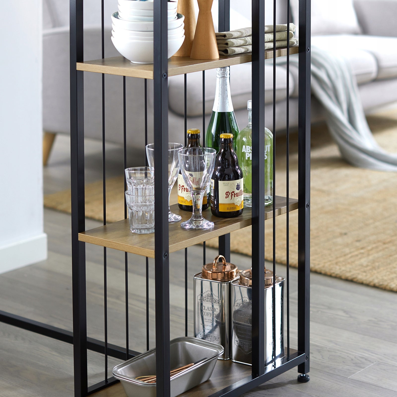 Šis SoBuy baro stalas yra puikus pasirinkimas dėl savo universalaus dizaino, derančio prie industrinio ir modernaus interjero. Trijų lygių lentynos suteikia išskirtinį funkcionalumą, leidžiant laikyti viską po ranka – nuo dekoracijų iki maisto ir gėrimų. Stabili konstrukcija ir tvirtos medžiagos garantuoja ilgalaikį naudojimą. Kompaktiški matmenys daro jį idealų sprendimą tiek mažesniems butams, tiek erdvesnėms virtuvėms ar svetainėms, sukuriant stilingą valgomojo zoną ar papildomą darbo paviršių.