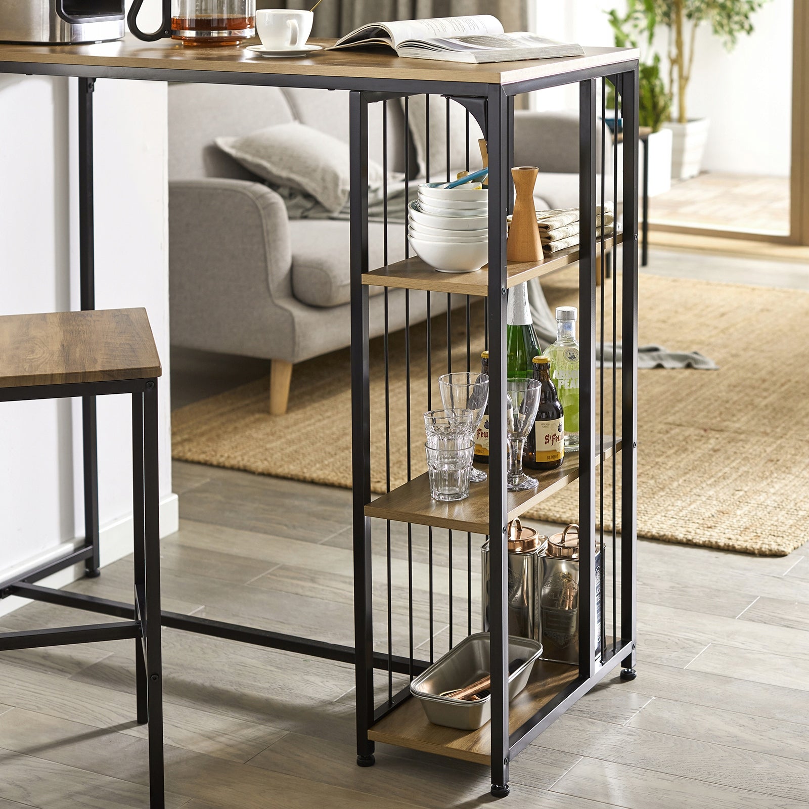 SoBuy Baro stalas virtuvei su lentyna, loftinio ąžuolo dizainas FWT84-PF