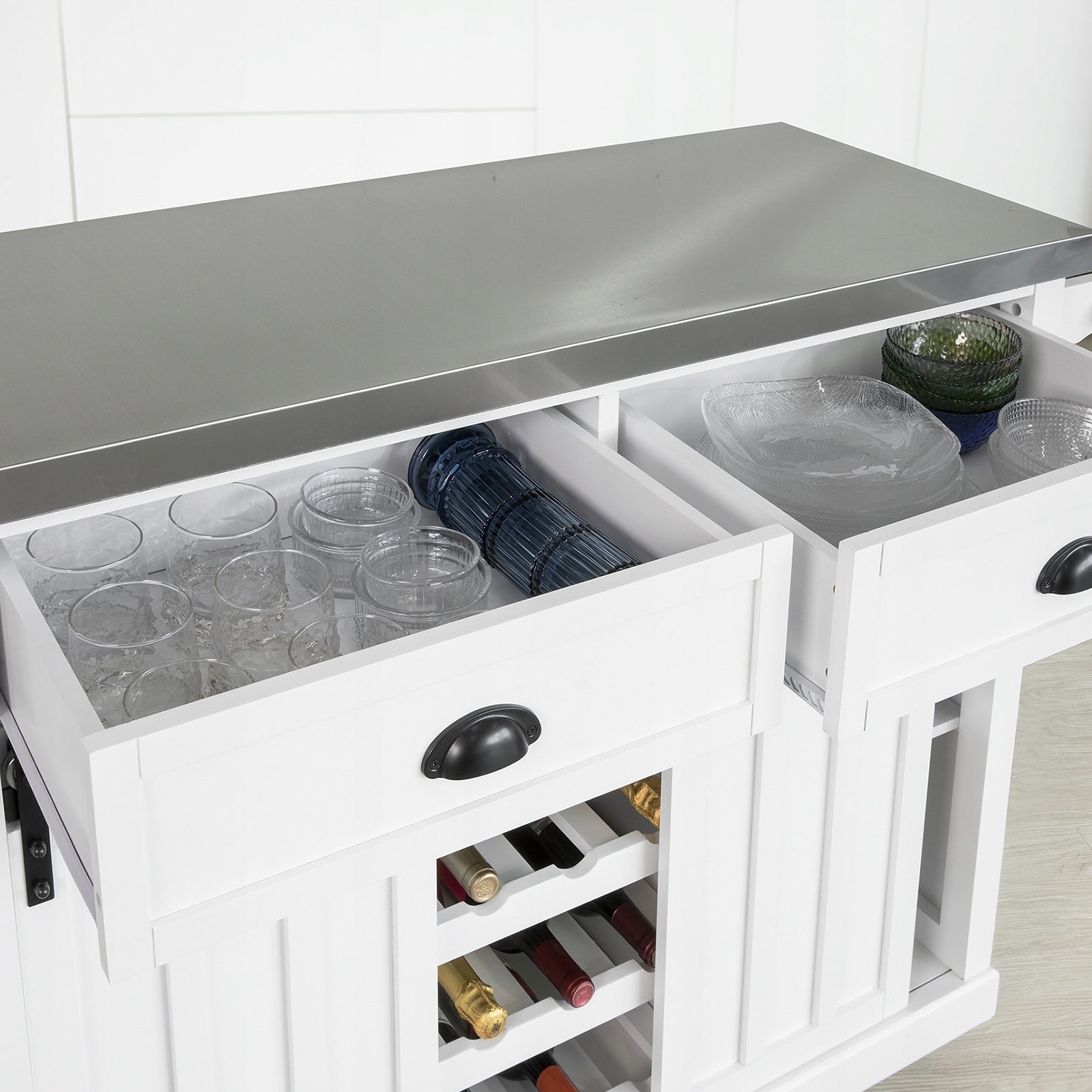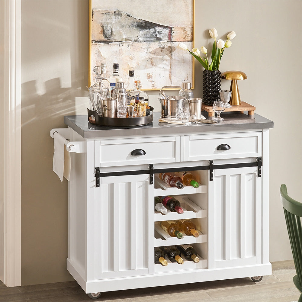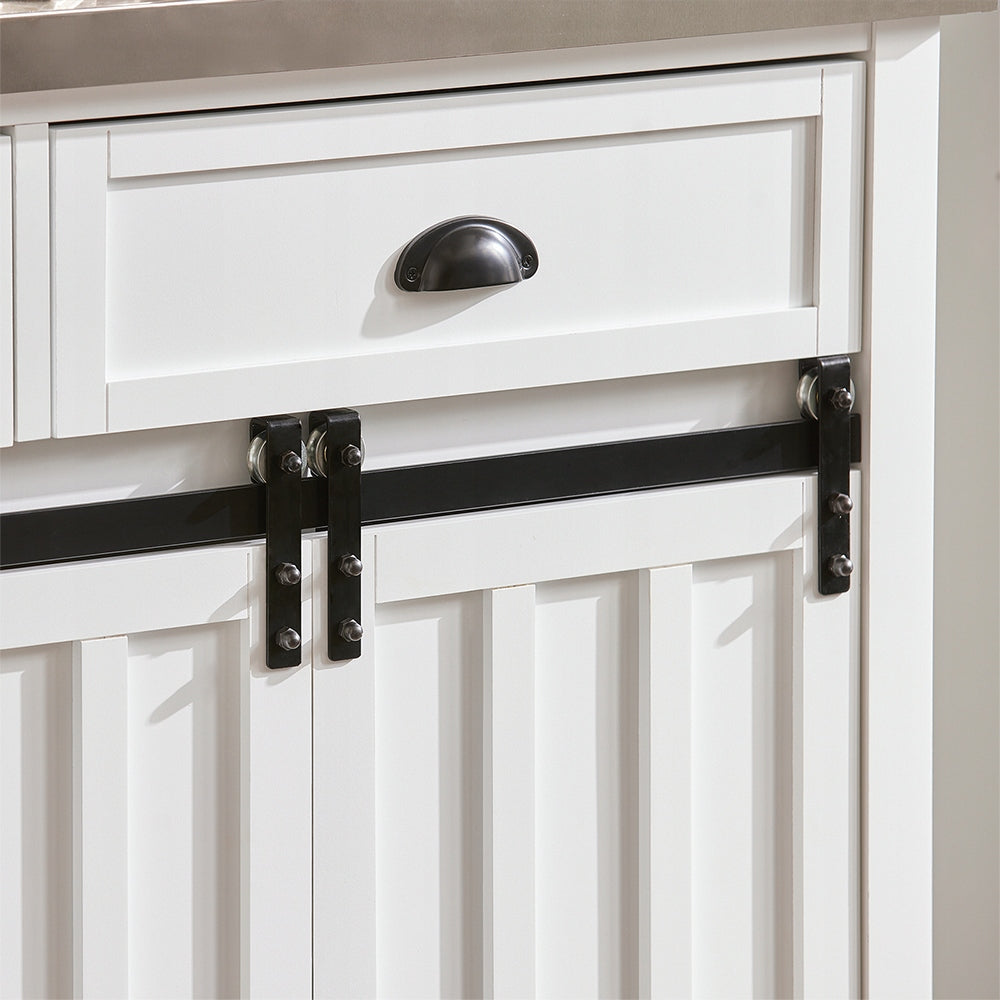 Ši virtuvės spintelė pasižymi itin apgalvota konstrukcija, orientuota į maksimalų patogumą ir talpumą. Nerūdijančio plieno stalviršis yra patvarus ir lengvai prižiūrimas, suteikia papildomą darbo paviršių ruošiant maistą. Blizgi balta korpuso apdaila su kontrastingomis juodomis rankenėlėmis sukuria madingą ir nesenstantį vaizdą. Spintelės mobilumas, užtikrintas keturių ratukų, leidžia lengvai keisti jos vietą, pritaikant prie jūsų poreikių – ji gali tapti tiek pagrindine virtuvės spintele, tiek patogiu padavimui skirta paslauga.