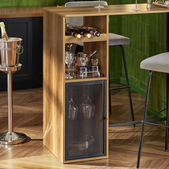 SoBuy Virtuvinis baro stalas su vyno lentynomis ąžuolo lofto stiliaus FWT97-PF