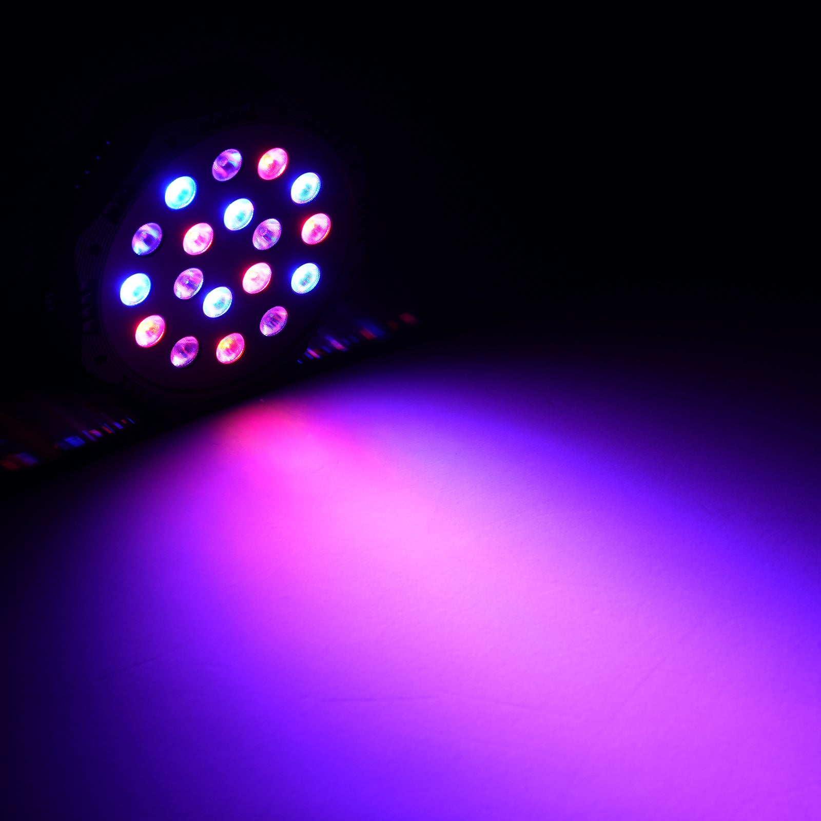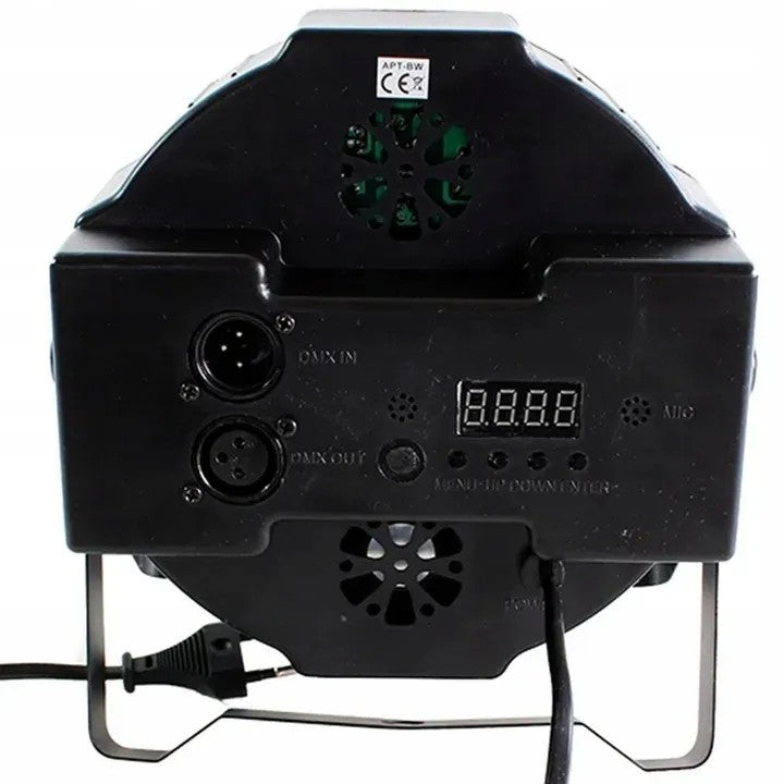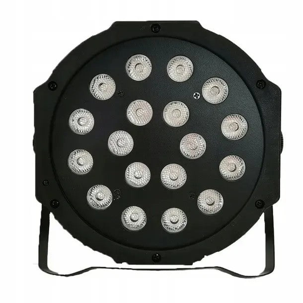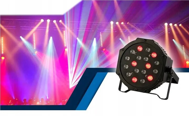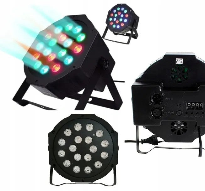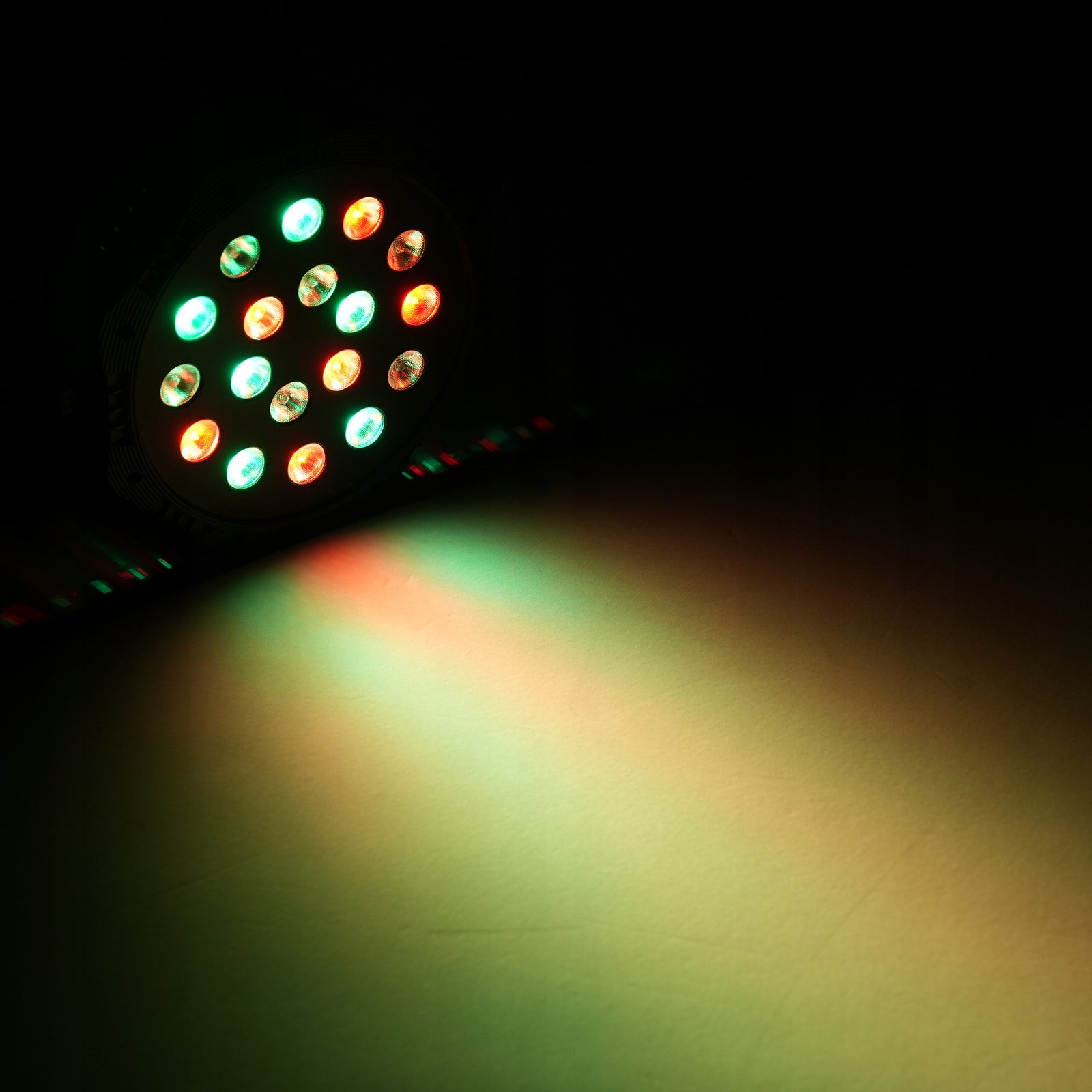 Šis reflektorius aprūpintas aštuoniolika (18) 1W RGB LED diodų, po šešias raudonas, žalias ir mėlynas, kurios kartu sukuria plačią spalvų gamą ir dinamiškus apšvietimo efektus. Stipri šviesa ir platus spindulio kampas užtikrina, kad apšvietimas pasieks net didžiausias patalpas, kurdamas pulsuojantį, spalvingą šviesų šou. Integruotas DMX valdymas suteikia galimybę profesionaliai kontroliuoti šviesos šou, sinchronizuoti kelis įrenginius ir kurti sudėtingus scenarijus. Taip pat, patogus komplekte esantis distancinis pultelis leidžia lengvai pasirinkti iš daugybės iš anksto nustatytų programų, reguliuoti spalvas, intensyvumą, mirksėjimo greitį bei režimus, net be DMX kontrolerio. Prietaisas gali veikti muzikos ritmo režimu, reaguoja į garsą, todėl jūsų šventė bus dar gyvesnė ir dinamiškesnė.