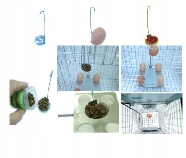 - Komplekte: kiaušinio pakaba, žnyplės masalui, vienkartinės pirštinės, žuvies kvapo tabletės, vadovas PDF formatu
