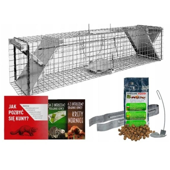Spąstai kiaunėms, žiurkėms, šeškams, audinėms, gyvalazdėms – tvirti 82x17x20 cm su masalo priedais