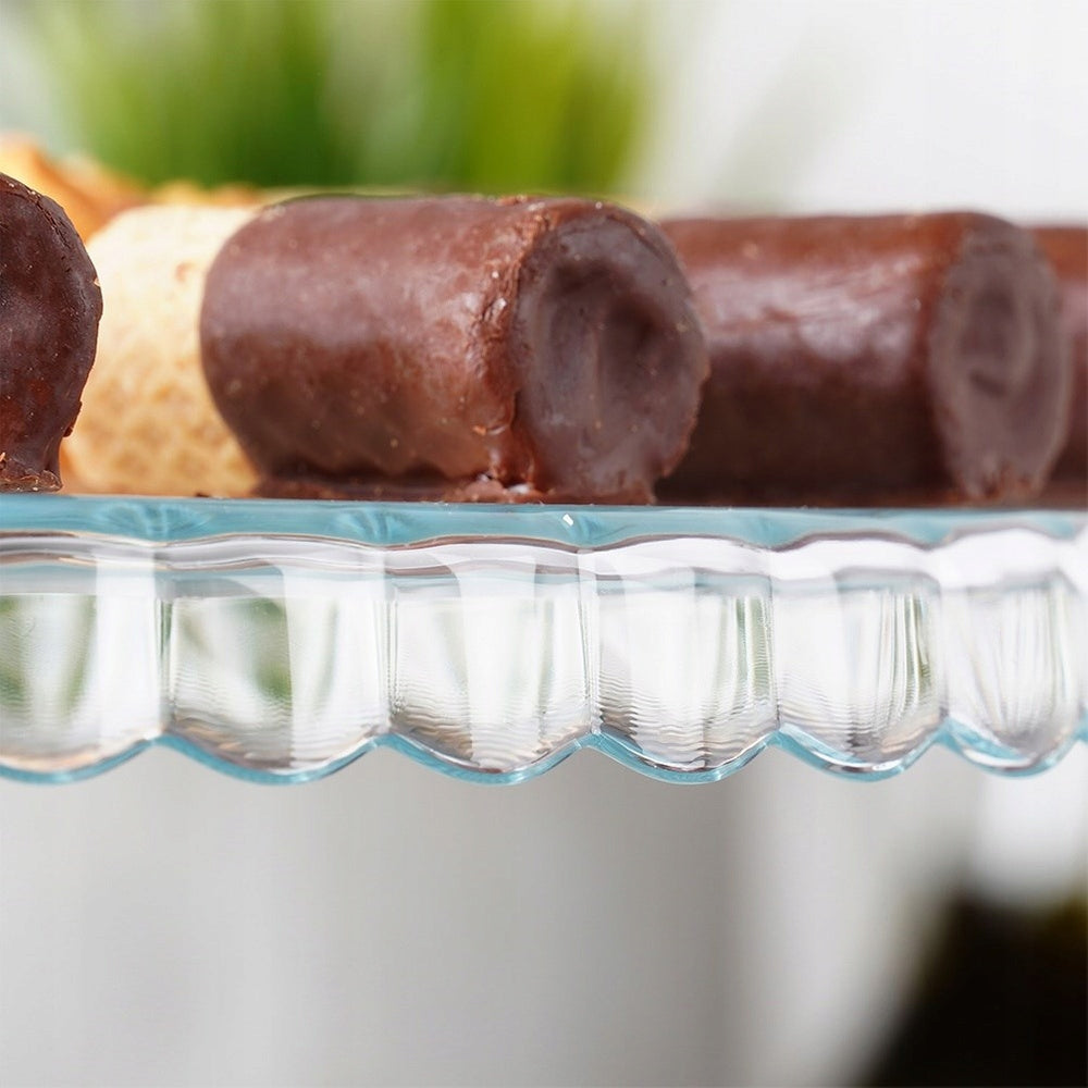 Stiklinė lėkštė yra neatsiejama dalis norint efektyviai ir gražiai patiekti maistą. Jos dydis (32 cm skersmens) yra idealus didesniems tortams ar kelių rūšių smulkiems kepiniams eksponuoti. Elegantiškas dizainas su banguotais kraštais suteikia jai prabangos, o skaidrus stiklas leidžia visu grožiu parodyti patiekiamus desertus. Tai ne tik funkcinis indas, bet ir svarbus stalo dekoro elementas, kuris akimirksniu pakylės bet kokią šventę ar susibūrimą į aukštesnį lygį. Ji puikiai tiks įvairioms progoms – gimtadieniams, vestuvėms, Kalėdoms ar tiesiog savaitgalio popietei su šeima.