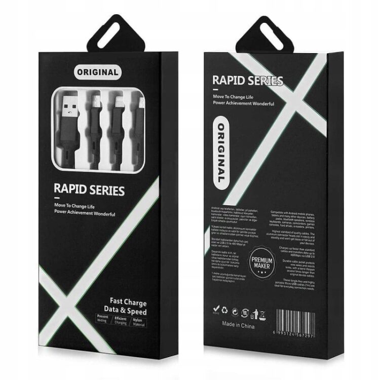 Papildomai, kartu su laikikliu, gausite universalų 3in1 USB kabelį. Šis juodos spalvos, nailono pynimu sutvirtintas kabelis yra idealus sprendimas įkrauti visus jūsų įrenginius. Jis turi standartinę USB jungtį iš vienos pusės ir tris skirtingas, dažniausiai naudojamas jungtis kitoje: MicroUSB, Lightning (suderinamą su Apple įrenginiais) ir USB Type-C. Tai leidžia vienu kabeliu krauti daugybę skirtingų telefonų, planšetinių kompiuterių ar kitų prietaisų. Kabelio ilgis yra 100 cm, o jo išėjimo srovė siekia 2.1 A, užtikrinant greitą ir efektyvų įkrovimą bei duomenų perdavimą.