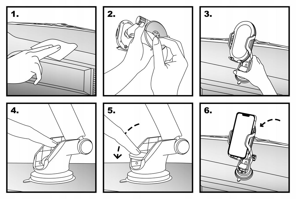 Tvirtinimo procesas yra itin intuityvus. Pirmiausia, pasirinkite norimą tvirtinimo vietą (stiklas, panelė ar grotelės) ir įsitikinkite, kad paviršius yra švarus ir sausas. Nuimkite apsauginę plėvelę nuo siurbtuko, tvirtai prispauskite laikiklį prie paviršiaus ir užfiksuokite jį specialiu svirtelės mechanizmu. Jei naudojate tvirtinimą prie grotelių, tiesiog įstatykite laikiklį į norimą padėtį. Po tvirtinimo galite įdėti savo telefoną ir džiaugtis saugiu bei patogiu jo naudojimu.