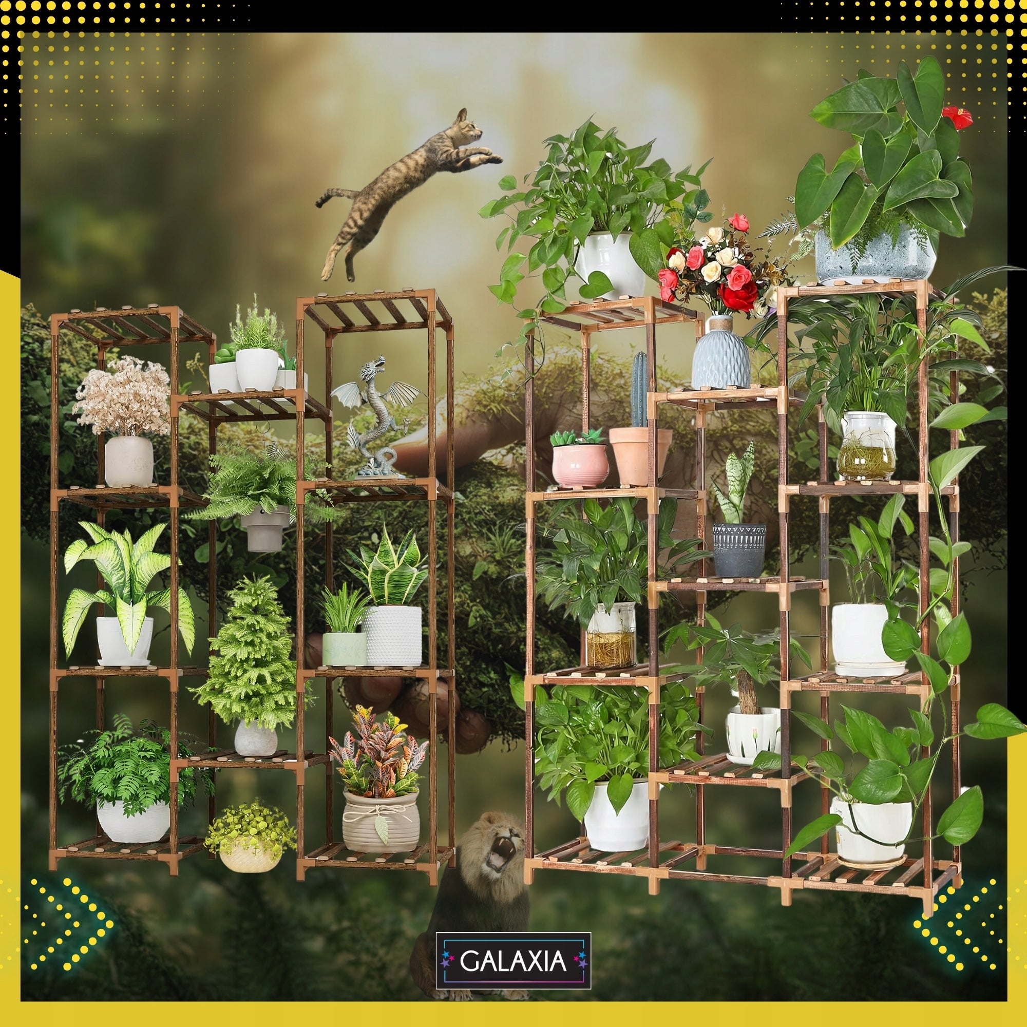 Atraskite nepakartojamą būdą eksponuoti savo mylimas gėles su mūsų 10-lygių mediniu stovu gėlėms. Šis daugiaaukštis augalų laikiklis, pagamintas iš aukštos kokybės natūralaus karbonizuoto medžio, suteiks jūsų namams ar sodui elegancijos ir jaukumo. Jo tvirta ABS jungčių konstrukcija užtikrina stabilumą ir ilgaamžiškumą, o atsparumas drėgmei bei UV spinduliams leidžia mėgautis grožiu tiek viduje, tiek lauke – balkone, terasoje ar sode. Daugiau nei 25 skirtingų dydžių vazonai ras savo vietą, sukurdami įspūdingą žalią oazę.