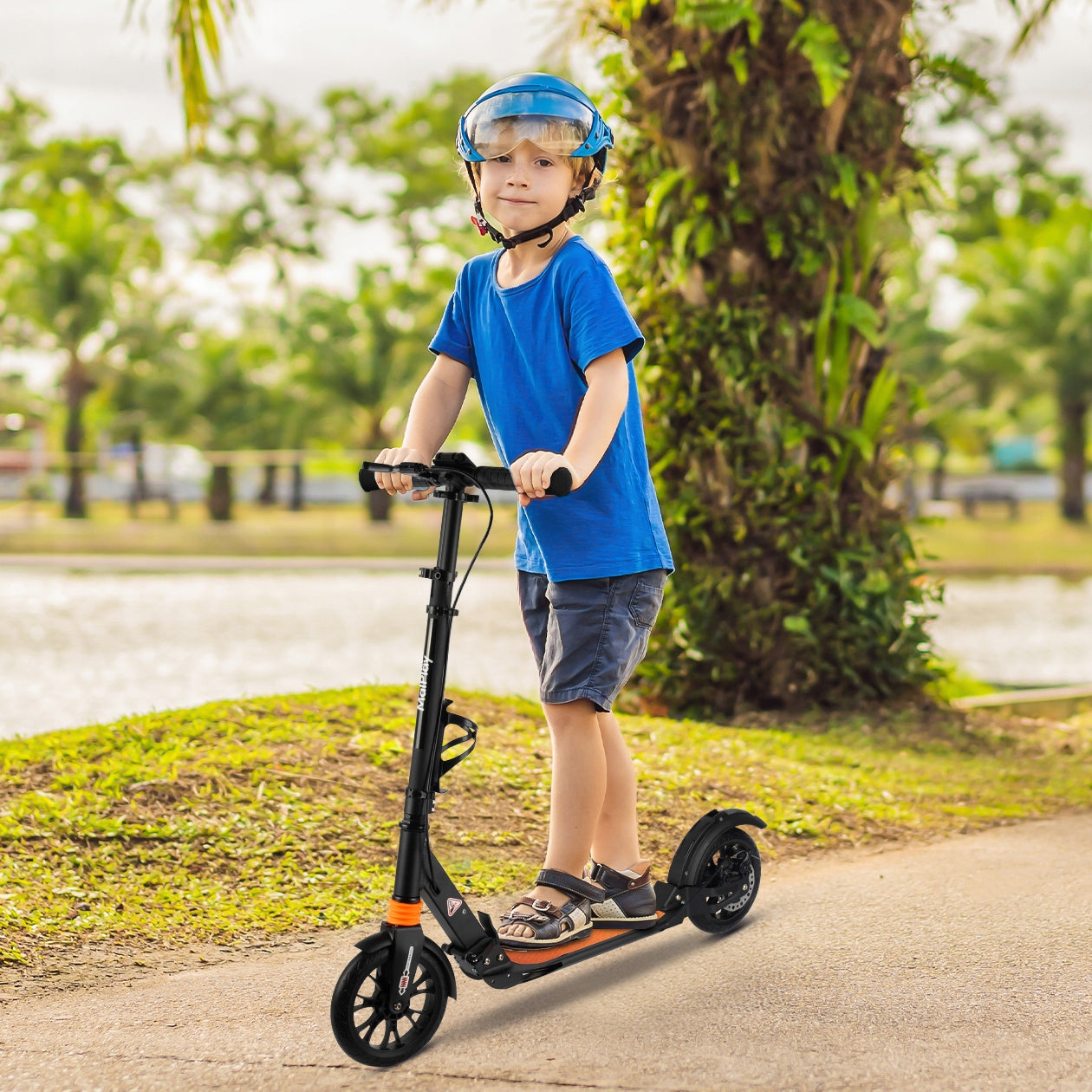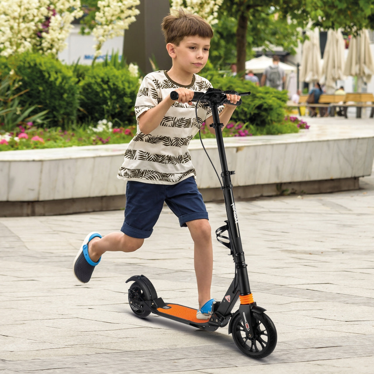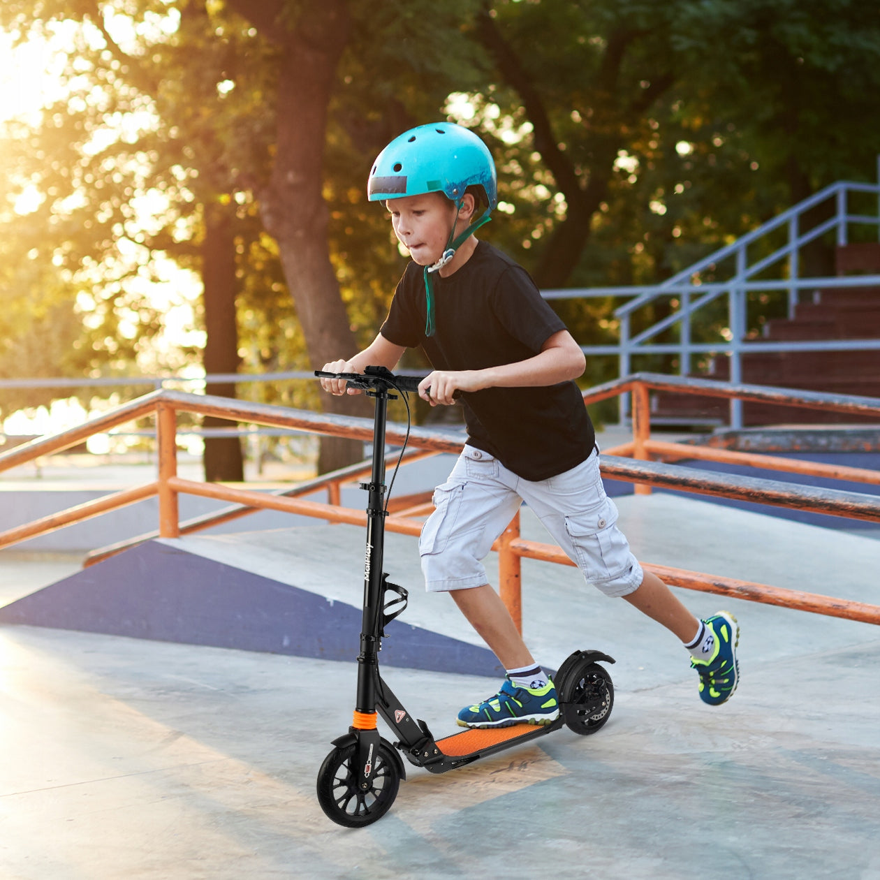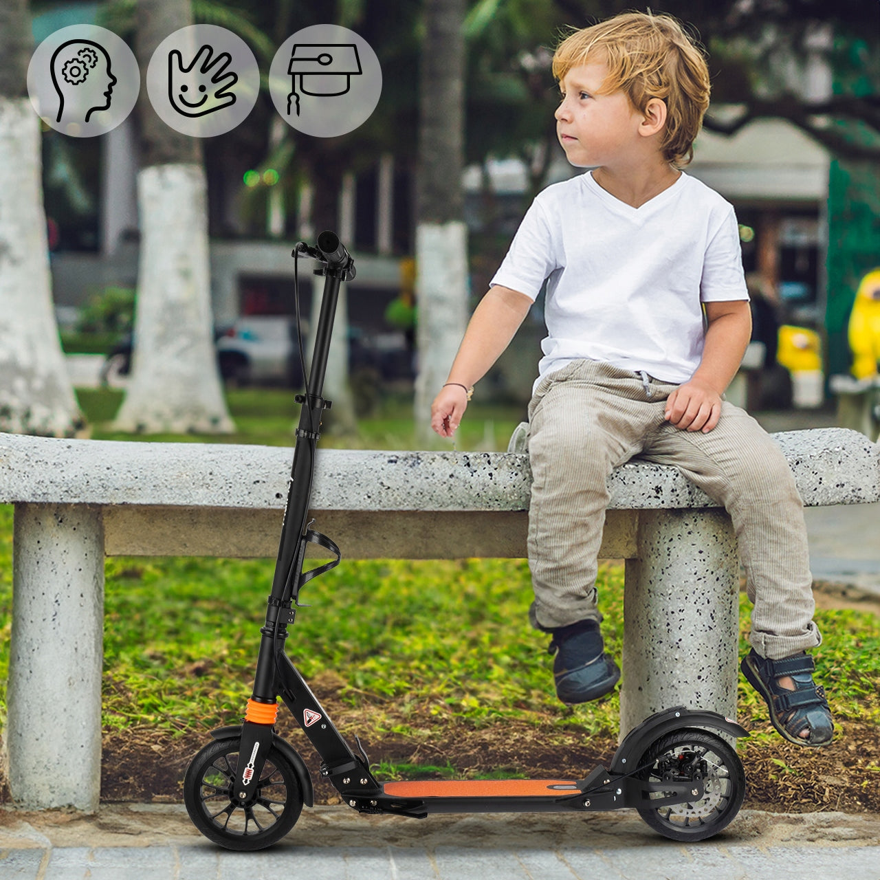 Pamirškite nemalonius vibracijų jausmus! Mūsų paspirtukas aprūpintas pažangia priekinės ir galinės ašies amortizacijos sistema, kuri efektyviai sugeria smūgius ir nelygumus. Tai reiškia, kad galėsite mėgautis sklandžia ir patogia kelione net važiuodami per šaligatvio plyteles, duobes ar kitus netolygumus. Dideli, 200 mm skersmens, guminiai ratai su ABEC-9 guoliais užtikrina puikų sukibimą su kelio danga ir stabilumą, o neslystanti platforma suteikia papildomo saugumo ir pasitikėjimo kiekvieno pasivažinėjimo metu. Tvirtas aliuminio rėmas atlaiko iki 100 kg svorį, todėl šis paspirtukas tinkamas tiek paaugliams, tiek suaugusiems.