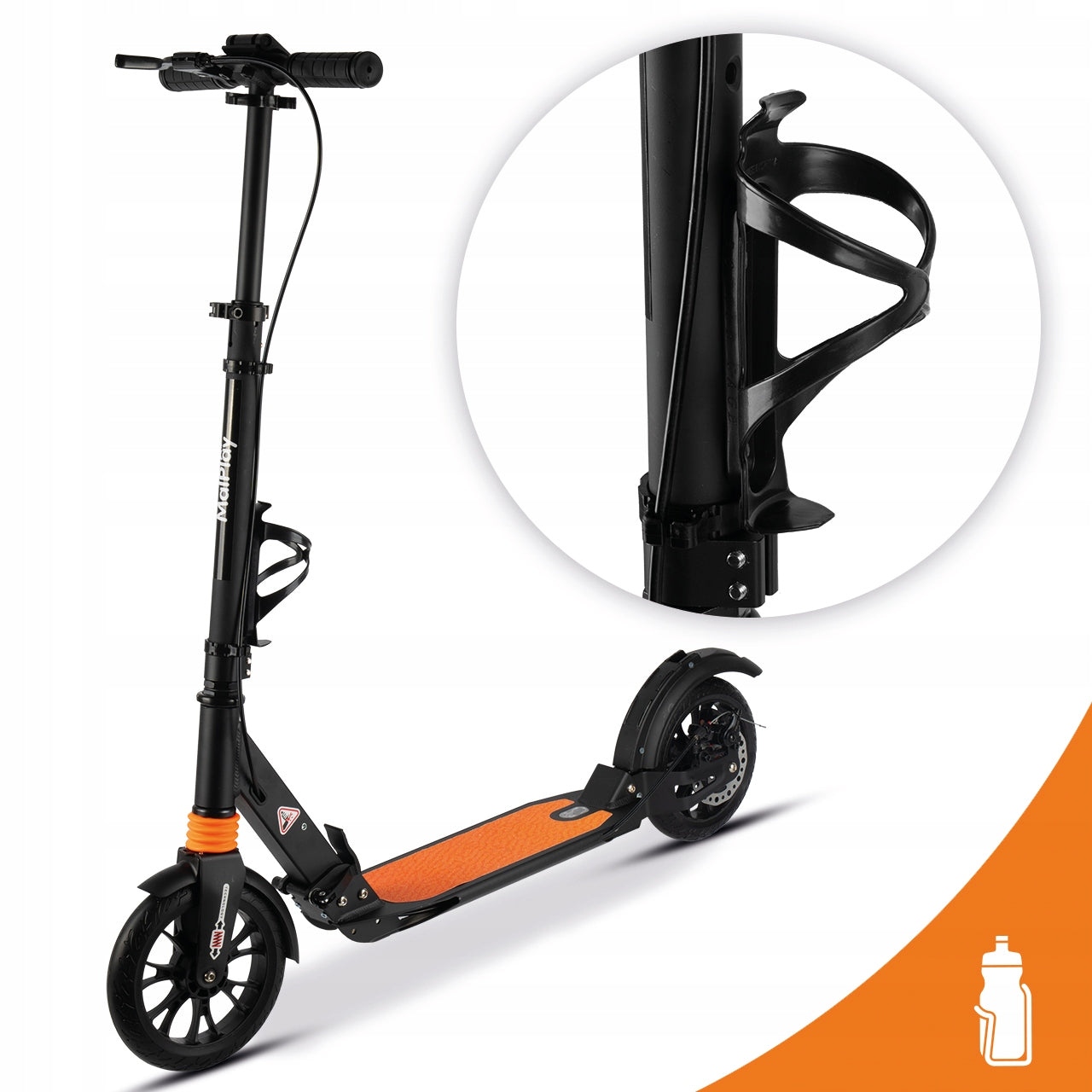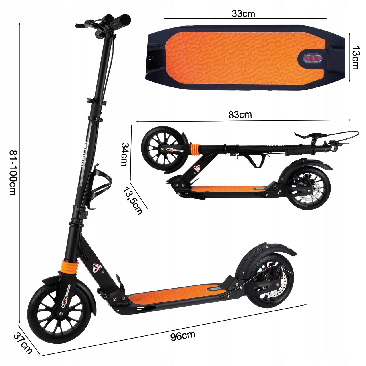 Šis paspirtukas sukurtas maksimaliam Jūsų patogumui ir saugumui. Dviguba amortizacija puikiai susidoroja su kelio nelygumais, užtikrindama sklandų važiavimą. Dideli, 20 cm ratai padeda lengviau įveikti kliūtis ir palaikyti stabilumą. Galinis diskinis stabdys kartu su klasikiniu kojiniu stabdžiu suteikia itin efektyvų stabdymą net ir drėgnomis sąlygomis. Reguliuojamas vairas (nuo 81 cm iki 100 cm) leis pritaikyti paspirtuką pagal Jūsų ūgį, o neslystanti platforma užtikrins tvirtą kojų padėtį. Integruotas gertuvės laikiklis yra puikus sprendimas ilgesnėms kelionėms ar karštoms dienoms, leidžiantis turėti atsigėrimą visada po ranka. O kai kelionės baigiasi, paspirtukas lengvai ir greitai sulankstomas – tai idealu keliaujant viešuoju transportu ar laikant jį automobilyje.