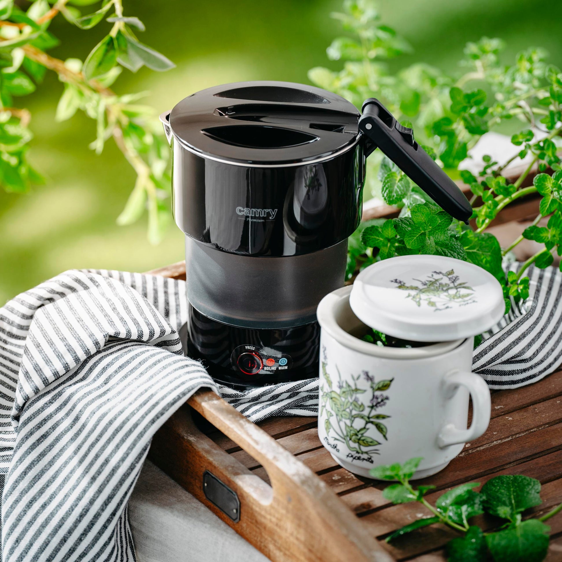 Kompaktiškas ir praktiškas sprendimas kelionėms! Camry CR1378 turistinis elektrinis virdulys su sulankstomu silikoniniu korpusu leidžia patogiai užvirti vandenį bet kur – tiek kempinge, tiek viešbutyje ar kelionėje automobiliu. Dėl 0,6 L talpos ir 600 W galios vanduo užverda greitai, o sulankstoma konstrukcija užtikrina, kad prietaisas neužims daug vietos bagaže.