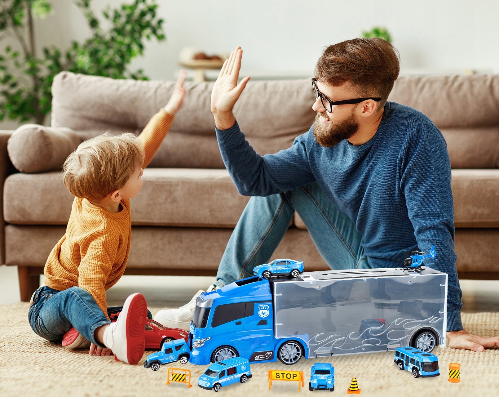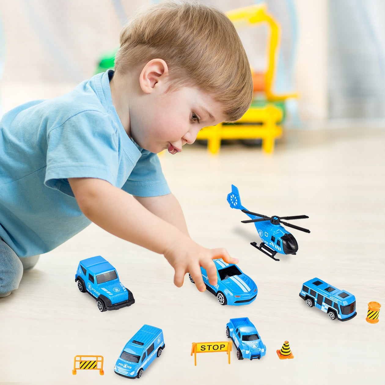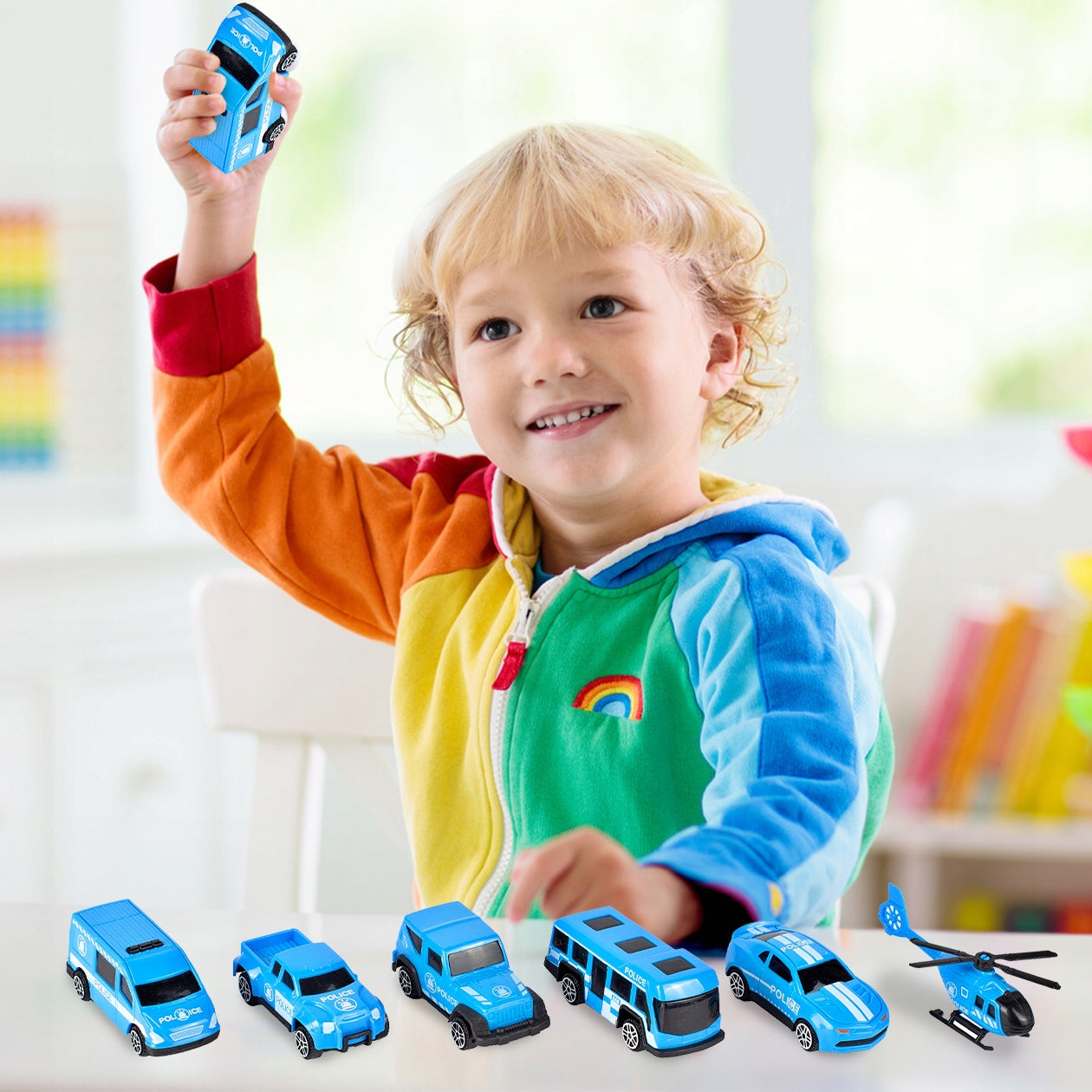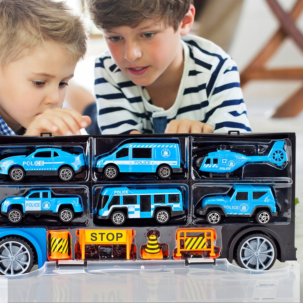Šis rinkinys – tai svajonių dovana kiekvienam mažajam automobilių ir transporto priemonių entuziastui. Daugiau nei 11 elementų sudarantis komplektas leis vaikams pasinerti į policijos pasaulį ir patiems kurti savo gelbėjimo misijas. Kiekvienas automobilis ir sraigtasparnis yra kruopščiai pagamintas, imituojant tikras transporto priemones. Dėka integruoto rankenos, vaikas gali lengvai pasiimti savo transporto priemonių kolekciją su savimi, kur tik nori – į darželį, pas draugus ar į kelionę. Skaidri priekinė dalis leidžia matyti transporto priemones, kai jos yra laikomos sunkvežimyje, suteikiant žaislui papildomo patrauklumo.