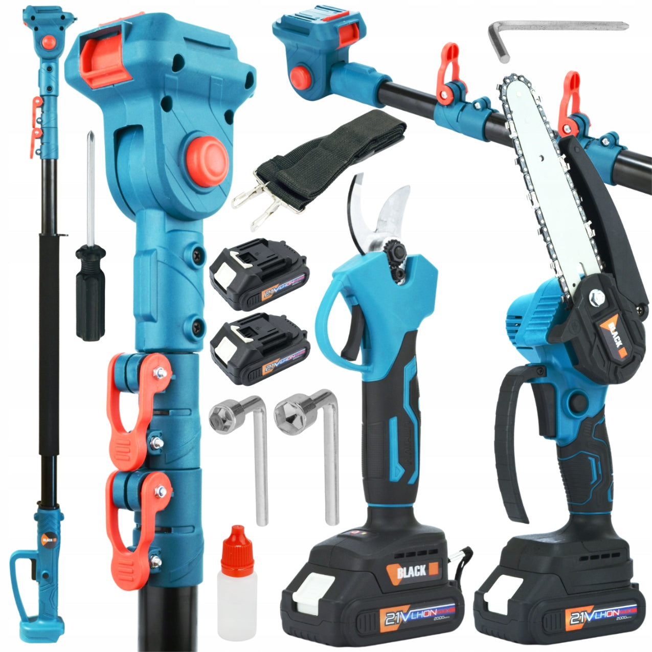 Šis rinkinys suteikia jums nepaprastą lankstumą atliekant sodo darbus. Komplekte rasite du skirtingus įrankius – vieną skirtą pjauti storesnes šakas ir kitą, skirtą preciziškam genėjimui. Abu įrankiai maitinami 21V ličio jonų baterijomis, kurios užtikrina ilgą darbo laiką ir greitą įkrovimą. Prailginimo strypas leidžia pasiekti net ir aukščiausias šakas, tad galėsite lengvai prižiūrėti aukštus medžius ir gyvatvores, išvengdami kopėčių naudojimo ir užtikrindami savo saugumą.