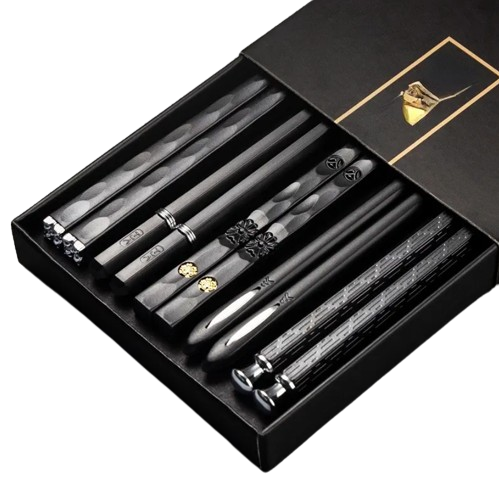 Pagamintos iš juodos spalvos metalo, šios valgymo lazdelės puikiai tinka bet kokiam stalo dekorui. Tai 10 vnt. rinkinys, kuris ne tik pasižymi išskirtiniu dizainu, bet ir garantuoja patvarumą ir ilgalaikį naudojimą. Šios lazdelės yra ne tik praktiška dovanos idėja sushi mėgėjui, bet ir puiki galimybė pridėti elegancijos ir modernumo virtuvei. Tad leiskite šioms metalinėms valgymo lazdelėms tapti ne tik valgymo įrankiu, bet ir išskirtiniu stalo akcentu, pridėsiančiu žavesio kiekvienam valgio momentui.