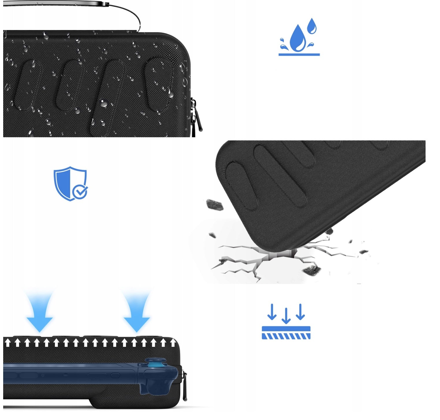 Šis dėklas yra pagamintas iš aukščiausios kokybės, tvirtų medžiagų, kurios užtikrina išskirtinę apsaugą nuo smūgių, įbrėžimų, dulkių ir drėgmės. Jo sustiprinta konstrukcija veikia kaip tvirtas barjeras, apsaugantis nuo kritimų ir netikėtų smūgių. Vidinis, minkštas EVA putplasčio pamušalas puikiai amortizuoja smūgius ir neleidžia konsolės paviršiui įbrėžti, išlaikant ją nepriekaištingos būklės ilgą laiką. Dvigubas, patvarus užtrauktukas užtikrina lengvą prieigą prie turinio ir tvirtai uždaro dėklą, saugant jį nuo aplinkos poveikio.