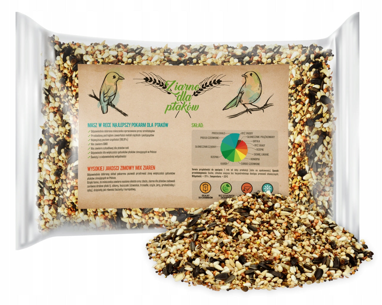 Mūsų žiemos grūdų mišinys yra kruopščiai paruoštas, atsižvelgiant į Lietuvos ir aplinkinių regionų žiemojančių paukščių mitybos poreikius. Sudėtyje esantys aliejingi grūdai ir sėklos suteikia gyvybiškai svarbios energijos, reikalingos atšiauriomis sąlygomis. Šis maistas tinka plačiam paukščių spektrui: nuo smulkiųjų zylių (mėlynosios, paprastosios) ir kikilių (margasis zylius, paukšteliai, devynbalsis, dagilis, kikilis) iki stambesnių paukščių, tokių kaip geniai, fazanai ir kurapkos. Jei norite padėti ir vandens paukščiams, ši misra yra puiki, sveika alternatyva pavojingam duonos vartojimui, tinkanti net gulbėms.