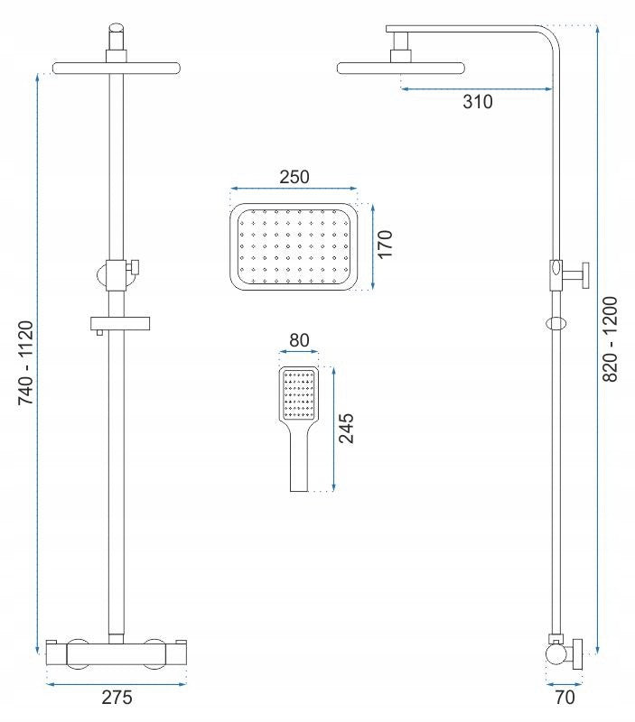 Patirkite nepakartojamą komfortą ir stilių su termostatiniu dušo komplektu TOM, sukurtu moderniems vonios kambariams. Šis elegantiškas, chromo apdailos komplektas, tvirtinamas ant sienos, ne tik suteiks Jūsų interjerui prabangos, bet ir užtikrins nepriekaištingą vandens temperatūros kontrolę. Dėl aukštos kokybės keramikinės kasetės ir patikimo vienrankio maišytuvo, kiekvienas dušo potyris taps malonus ir saugus. Komplektas pasižymi reguliuojamu aukščiu (82-120 cm) ir stilinga, didelio diametro lietaus galva (25x17 cm), kuri sukuria gaivų lietų primenantį pojūtį.