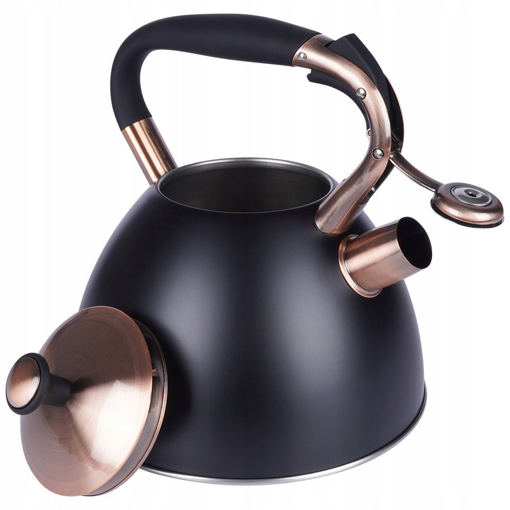 Tradicinis arbatinukas su švilpuku vandeniui virti ant dujinės ir indukcinės viryklės, juodas, 3L