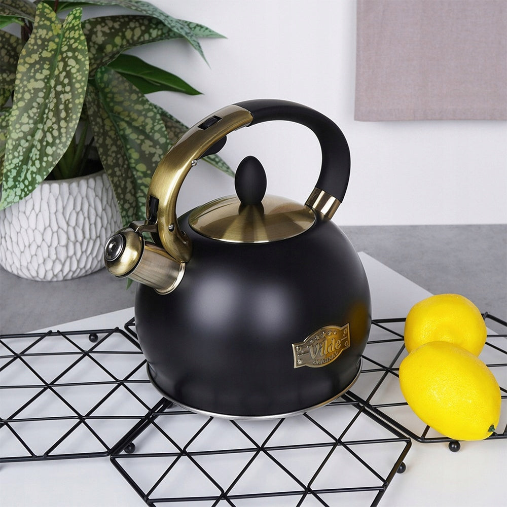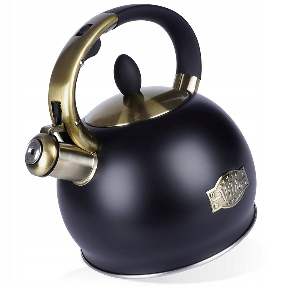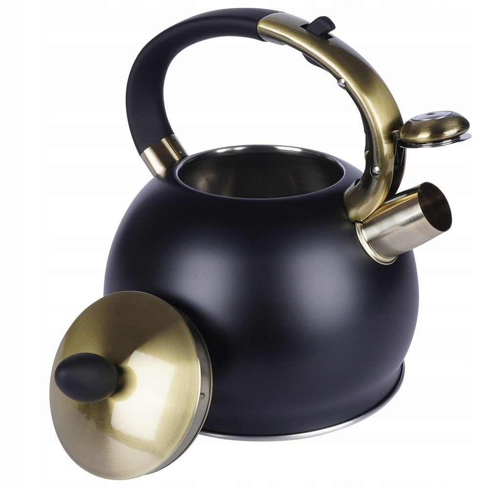 Tradicinis arbatinukas su švilpuku vandeniui virti ant dujinės ir indukcinės viryklės, juodas, 3L