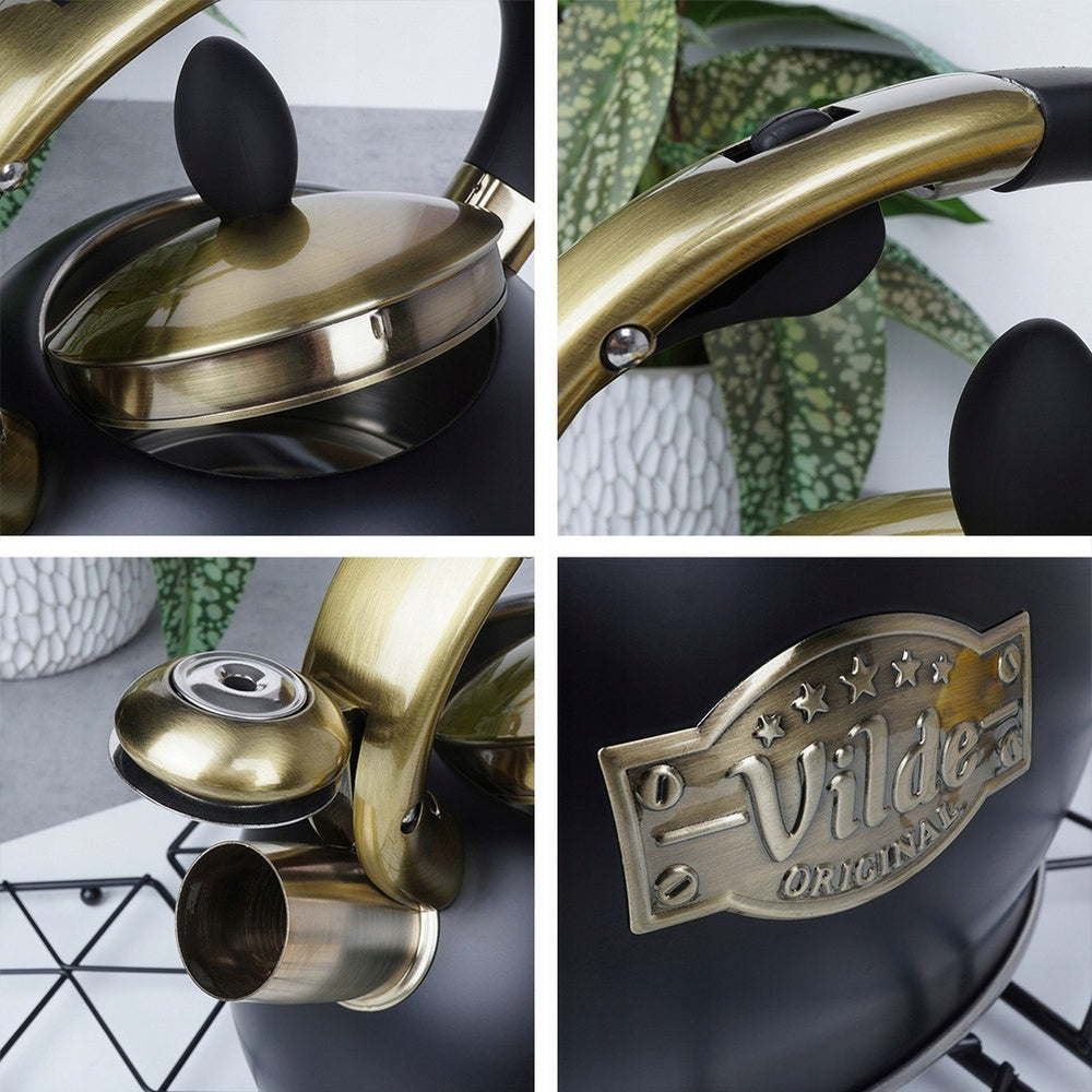 Ieškote patikimo ir stilingo sprendimo greitai užvirti vandenį? Pristatome tradicinį, 3 litrų talpos virdulį, sukurtą atsižvelgiant į modernius poreikius ir klasikines vertybes. Pagamintas iš aukščiausios kokybės nerūdijančio plieno, šis juodos spalvos virdulys su subtiliais, sendinto aukso akcentais, taps ne tik funkcionaliu virtuvės įrankiu, bet ir elegantišku interjero puošybos elementu. Jo tvirta konstrukcija ir kruopštus apdirbimas garantuoja ilgaamžiškumą, o neutrali medžiaga užtikrina, kad vandens skonis išliks nepakitęs. Virdulys turi patogų automatinį švilpuką, kuris garsiu signalu praneš apie užvirusį vandenį, ir nuimamą dangtelį, palengvinantį vandens papildymą. Idealiai tinka tiek modernioms, tiek klasikiniams virtuvės interjerams.
