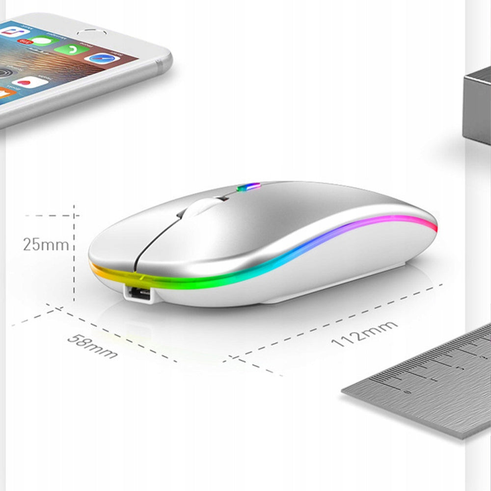 Tyli belaidė pelė su LED RGB pašvietimu nešiojamam kompiuteriui ir biurui