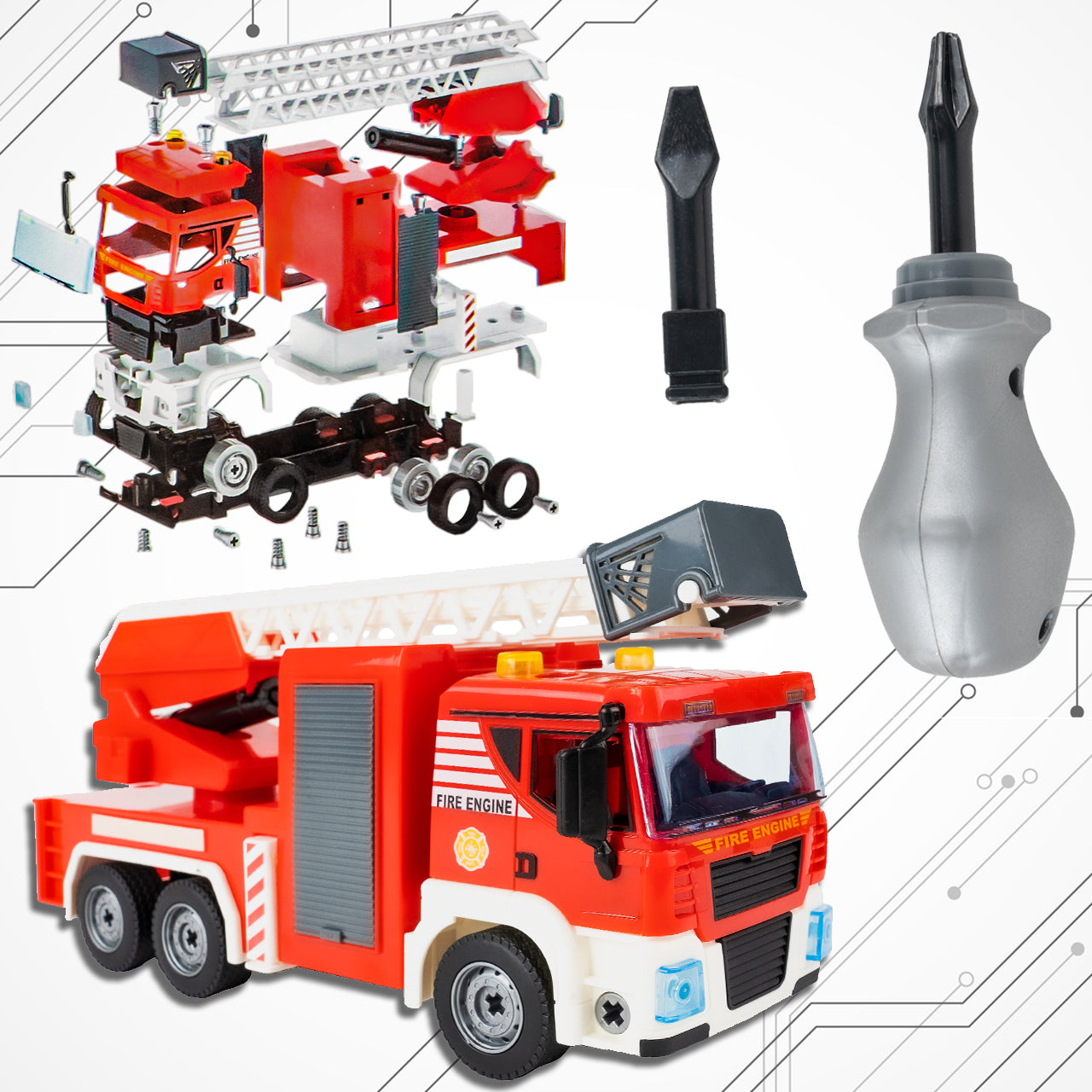 Ugnies gesintuvų automobilis su surinkimo rinkiniu ir garsais: linksmybės ir mokymasis