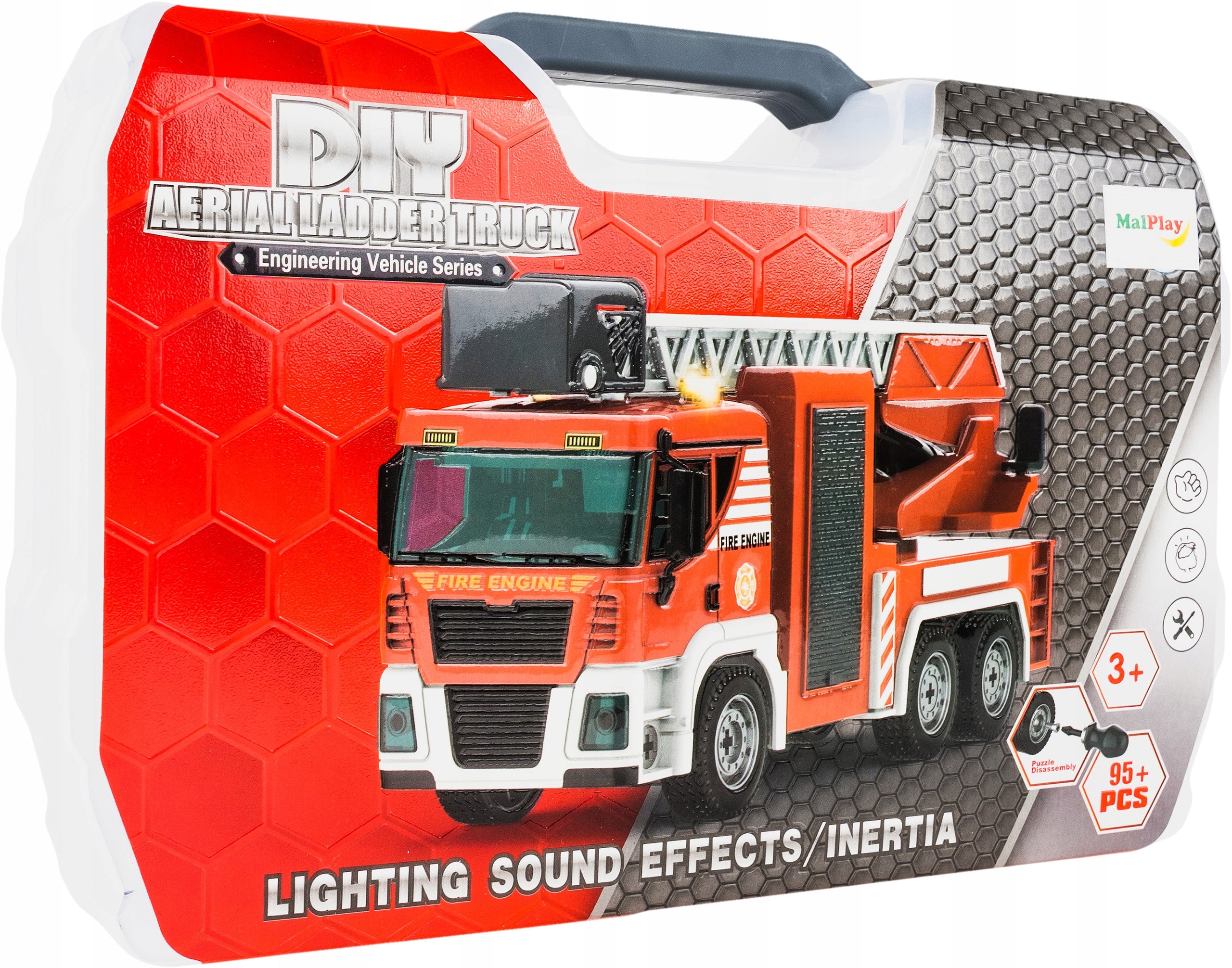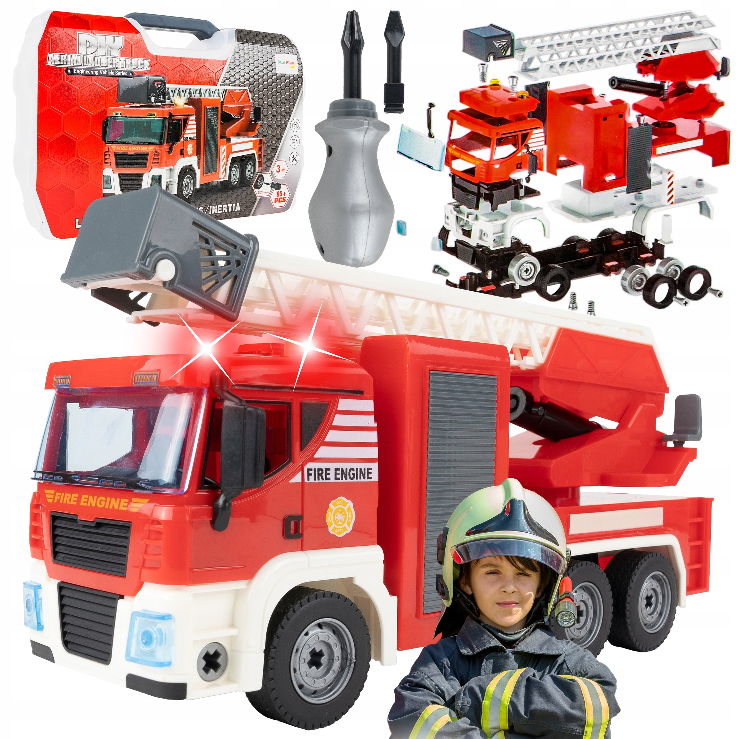 - Daugiau nei 95 detalės, skirtos surinkti ugniagesių automobilį.