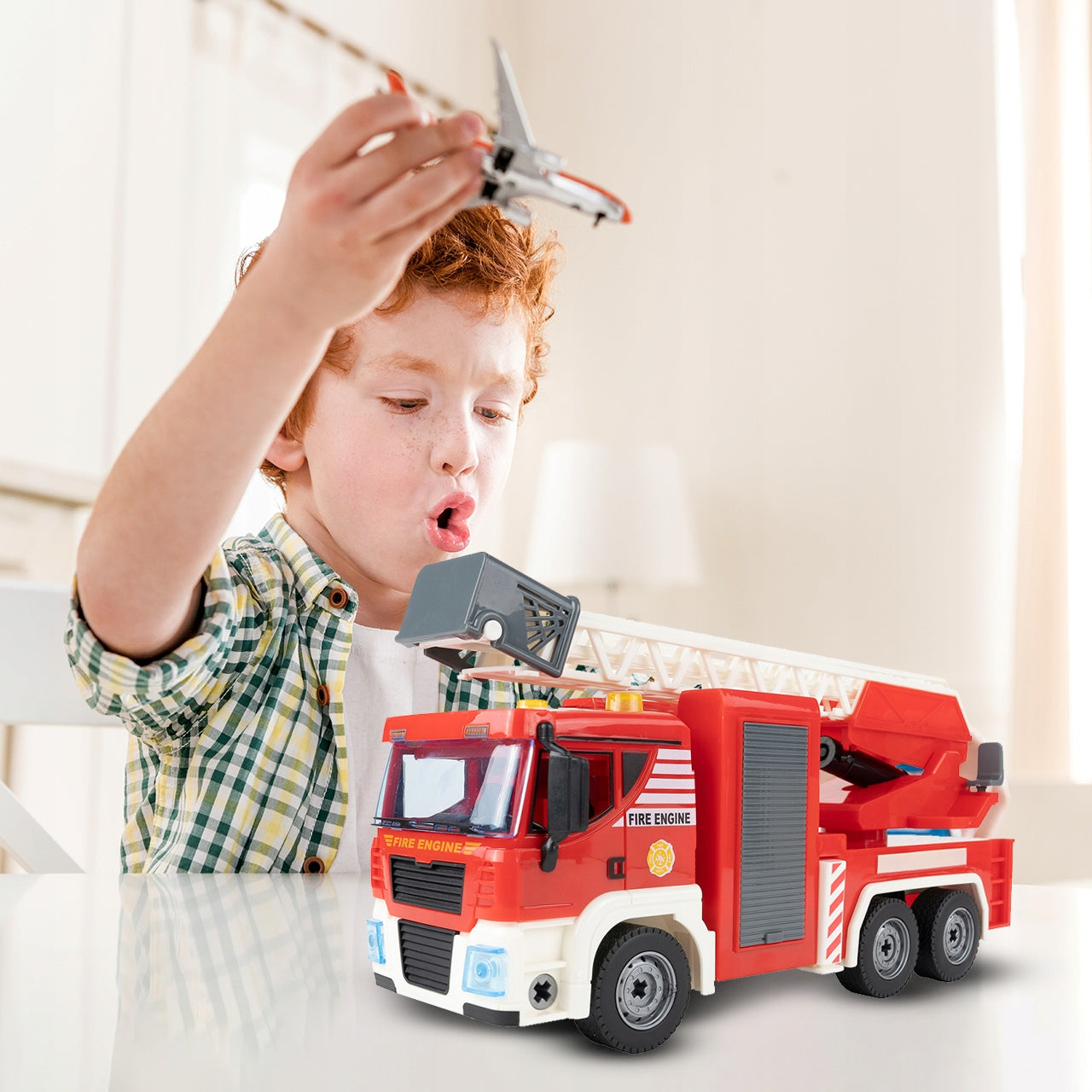 Šis modelis sukurtas tam, kad kiekvienas žaidimas būtų kuo realistiškesnis ir įtraukiantis. Vos paspaudus mygtuką ant kabinos stogo, automobilis atgyja: ima groti melodija, šviečia lemputės. Tai suteikia žaidimui dinamikos ir padeda vaikams atlikti vaidmenis. Surinktas automobilis ne tik atrodo įspūdingai, bet ir atkuria tikro ugniagesių automobilio garsus – variklio užvedimą, atbulinę eigą ir signalo garsą. Šiems garsams paprastai prideda ir raudonos mirksinčios lempos, esančios ant kabinos viršaus, taip sukuriant autentišką gelbėjimo operacijos atmosferą. Vaikai gali statyti savo scenarijus, lavindami vaizduotę ir žaisdami vaidmenis.