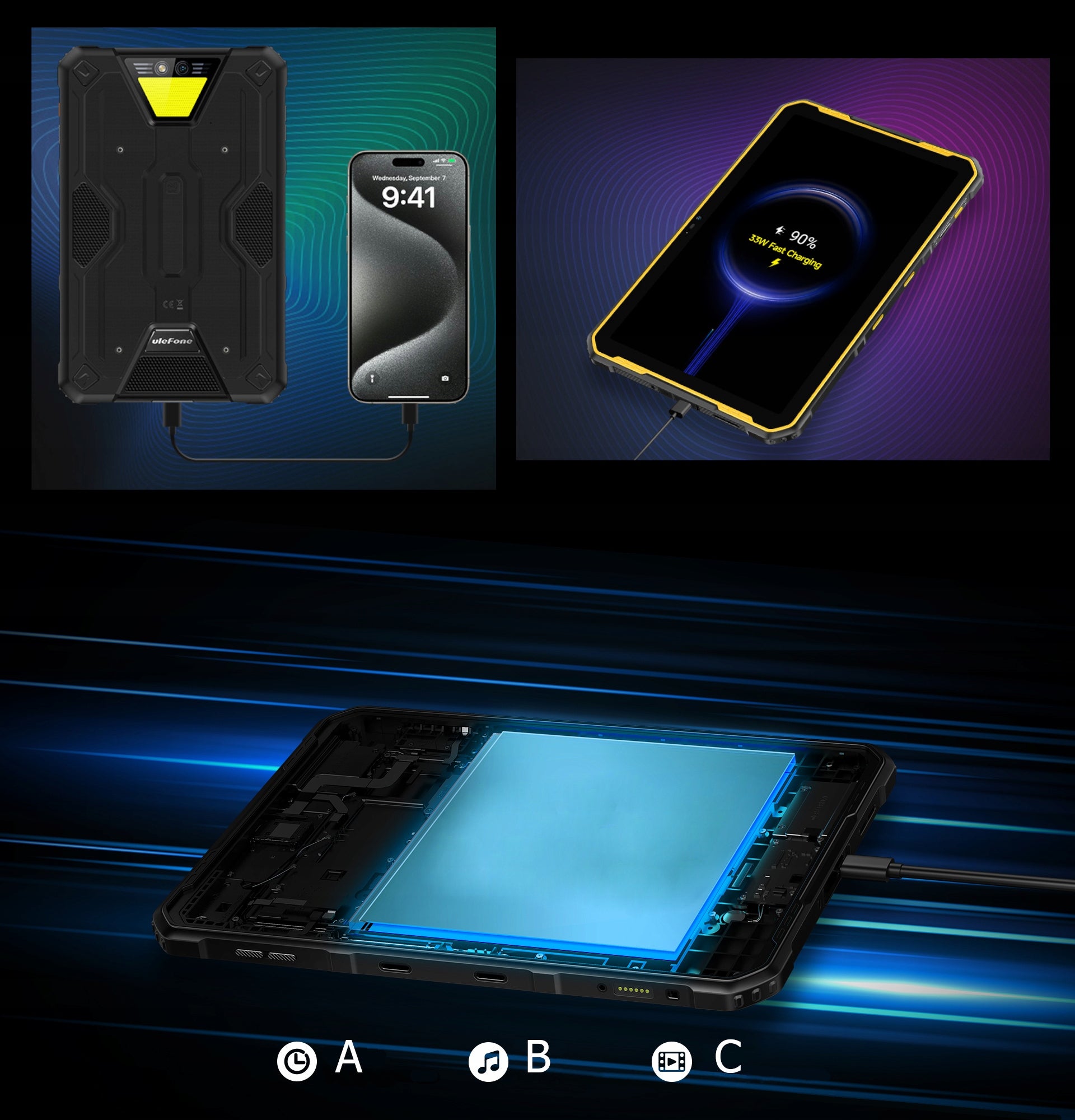 Ulefone Armor Pad 2 sukurtas atsižvelgiant į profesionalų darbą sudėtingomis sąlygomis. Jo korpusas pagamintas iš tvirtų, smūgiams atsparių medžiagų, o patikimumą garantuoja atitiktis aukščiausiems apsaugos standartams: IP68 ir IP69K. Tai reiškia, kad planšetė gali būti panardinta į vandenį, atlaikyti aukšto slėgio vandens čiurkšles ir apsaugo nuo dulkių patekimo. Be to, ji turi MIL-STD-810H sertifikatą, patvirtinantį jos atsparumą kritimams, vibracijai ir plačiam temperatūrų diapazonui. Ši planšetė yra idealus pasirinkimas statybvietėms, pramonės įmonėms, techninės priežiūros tarnyboms ir kitiems sektoriams, kur įprasta elektronika greitai sugenda.