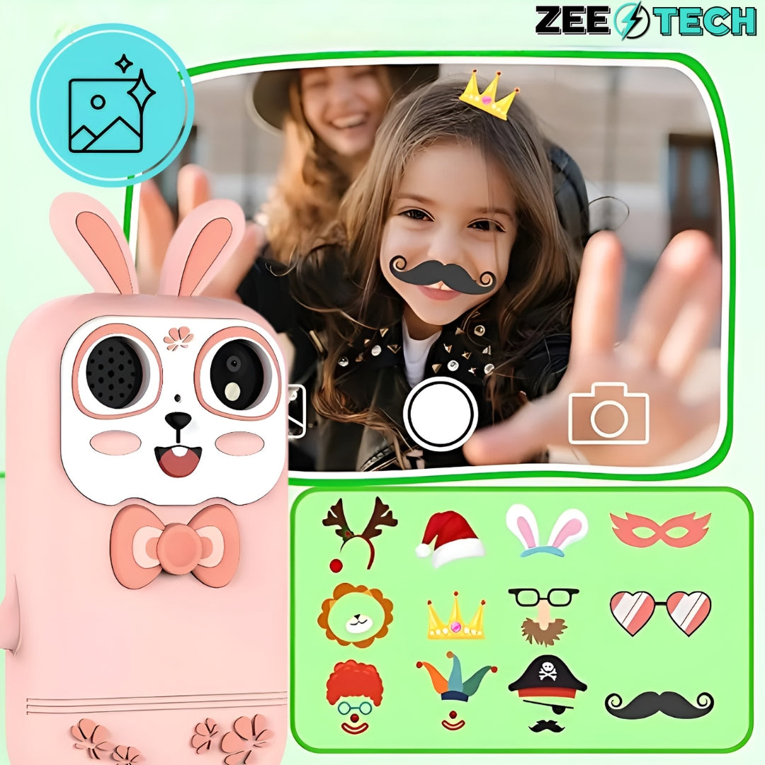 Šis žaislinis fotoaparatas yra kur kas daugiau nei paprastas žaislas – tai interaktyvi platforma, skirta skatinti vaikų vystymąsi. Įmontuota dviguba kamera leidžia užfiksuoti pirmuosius kadrus ir kurti savo istorijas, lavinant vaizduotę. Galimybė pridėti nuotraukų rėmelius ir filtrus suteikia vaikui saviraiškos laisvę ir padeda atrasti skirtingus vaizdinius sprendimus. Muzikos grotuvas, diktofonas, skaičiuotuvas ir net penki lavinamieji žaidimai skatina loginį mąstymą, koncentraciją ir problemų sprendimo įgūdžius. Funkcijos kaip žadintuvas, laikmatis ir kalendorius pamažu moko vaiką atsakomybės ir laiko planavimo.