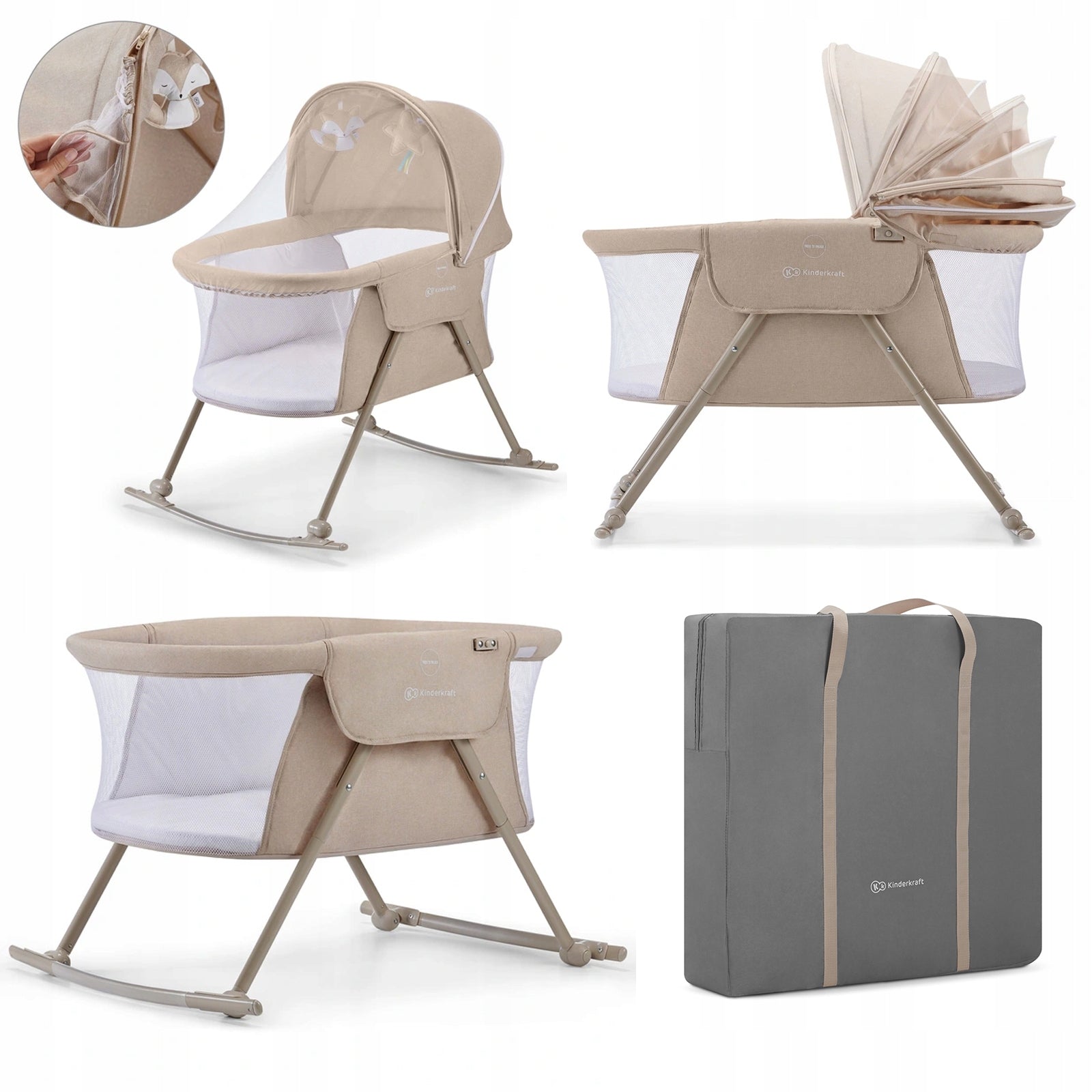Vaikiška lovytė lopšys supynėlės 3in1 kompaktiškas Lovi Kinderkraft smėlio spalvos