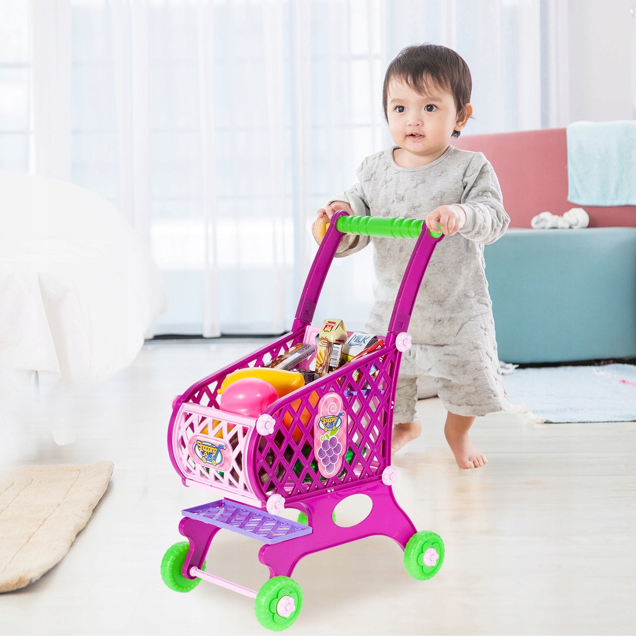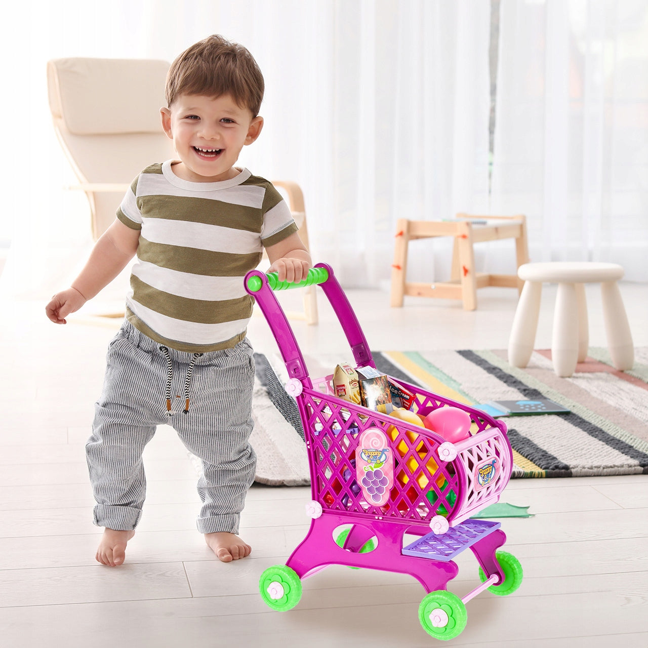 Vaikiškas rožinis parduotuvės vežimėlis/krepšelis su pirkiniais