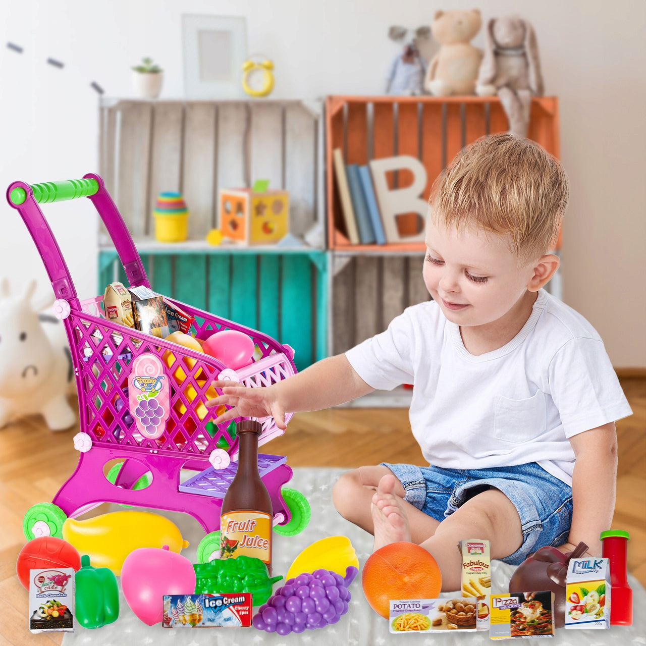 Žaidimas su šiuo vežimėliu ne tik linksmina, bet ir aktyviai prisideda prie vaiko raididos. Imintacinis žaidimas „parduotuvėje“ padeda lavinti vaikų kalbinius įgūdžius, skaičiavimo gebėjimus (pvz., apsimestinai skaičiuojant prekes ar pinigus), socialines kompetencijas per bendravimą su kitais žaidimo dalyviais bei problemų sprendimo įgūdžius, kai reikia nuspręsti, ką „pirkti“ ar kaip sutvarkyti prekes.