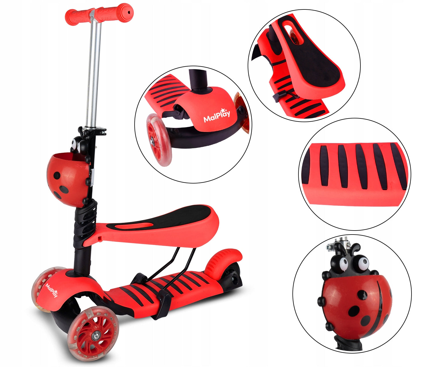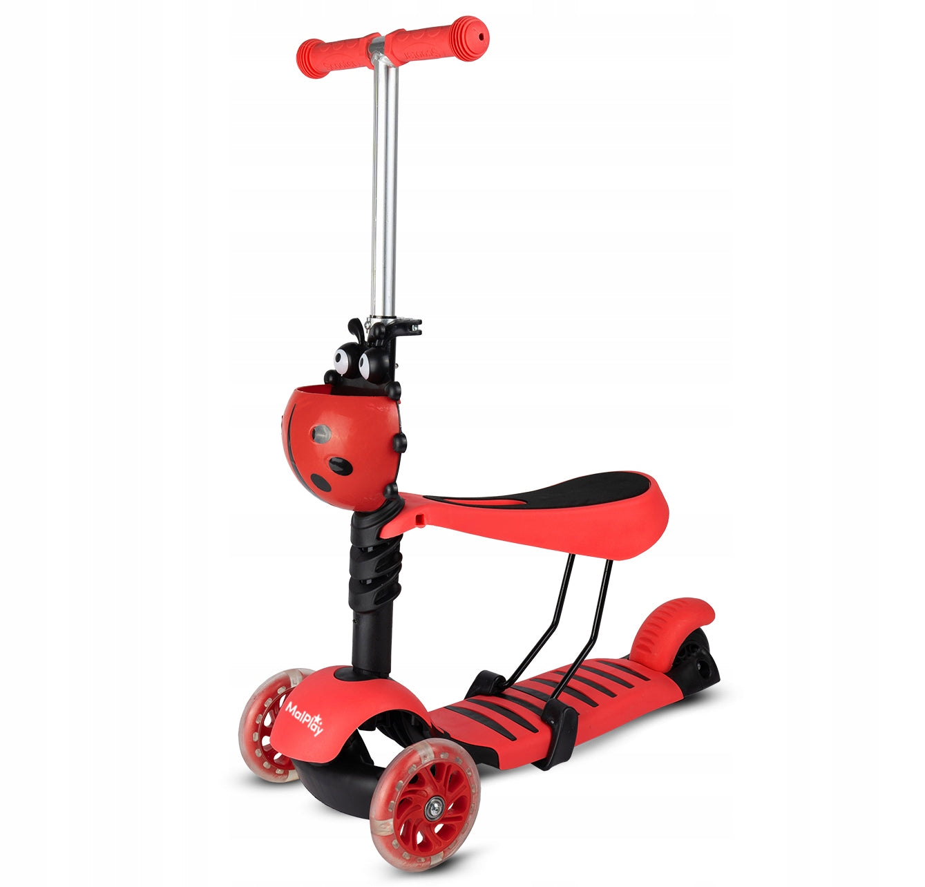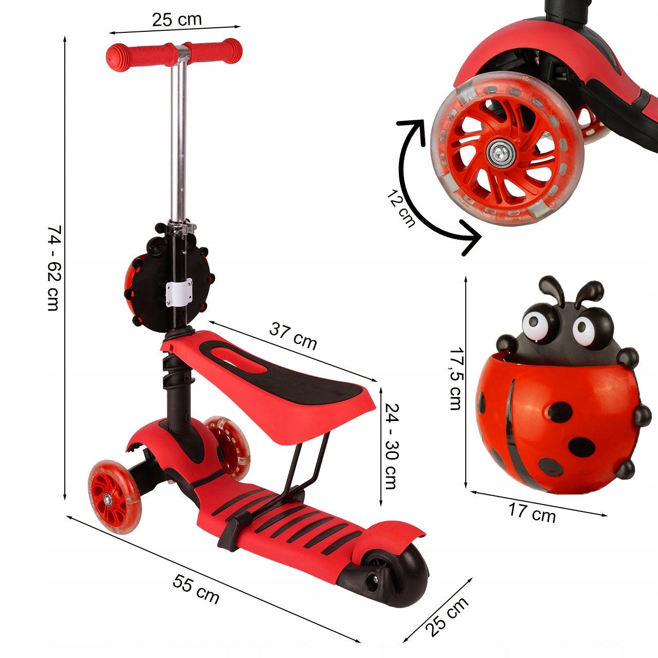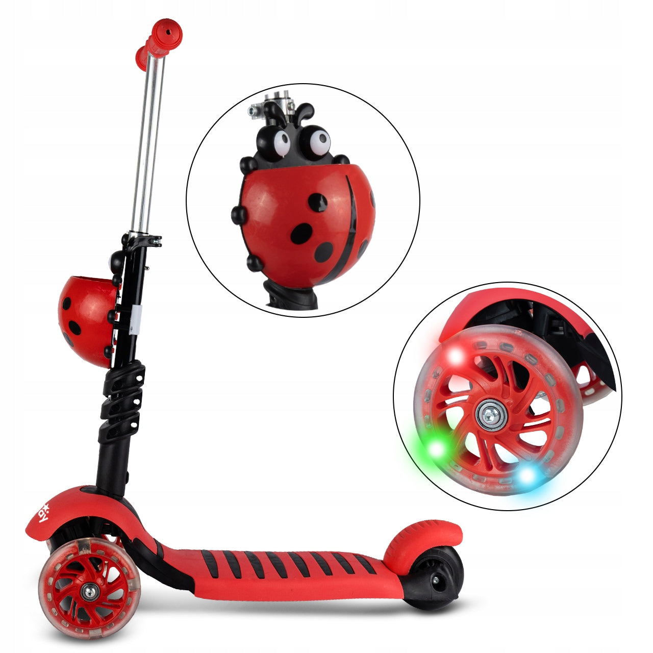 - - Atkreipia dėmesį: Ryškus boružėlės dizainas ir šviečiantys LED ratukai džiugina vaikus ir padidina jų matomumą.