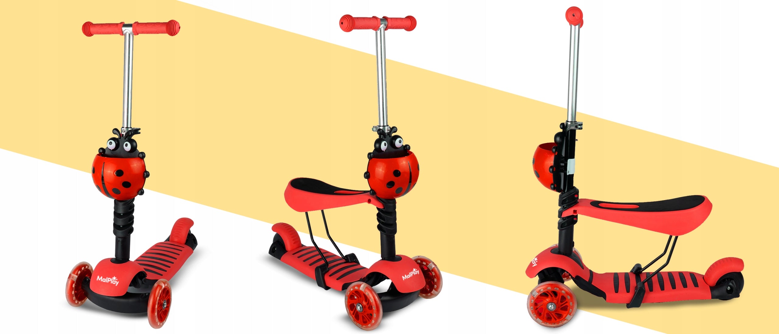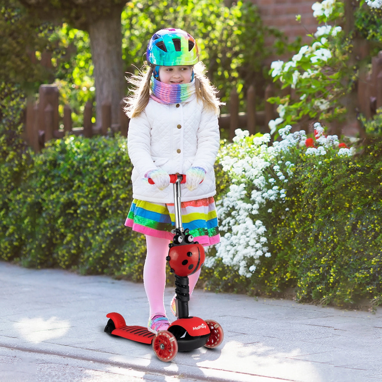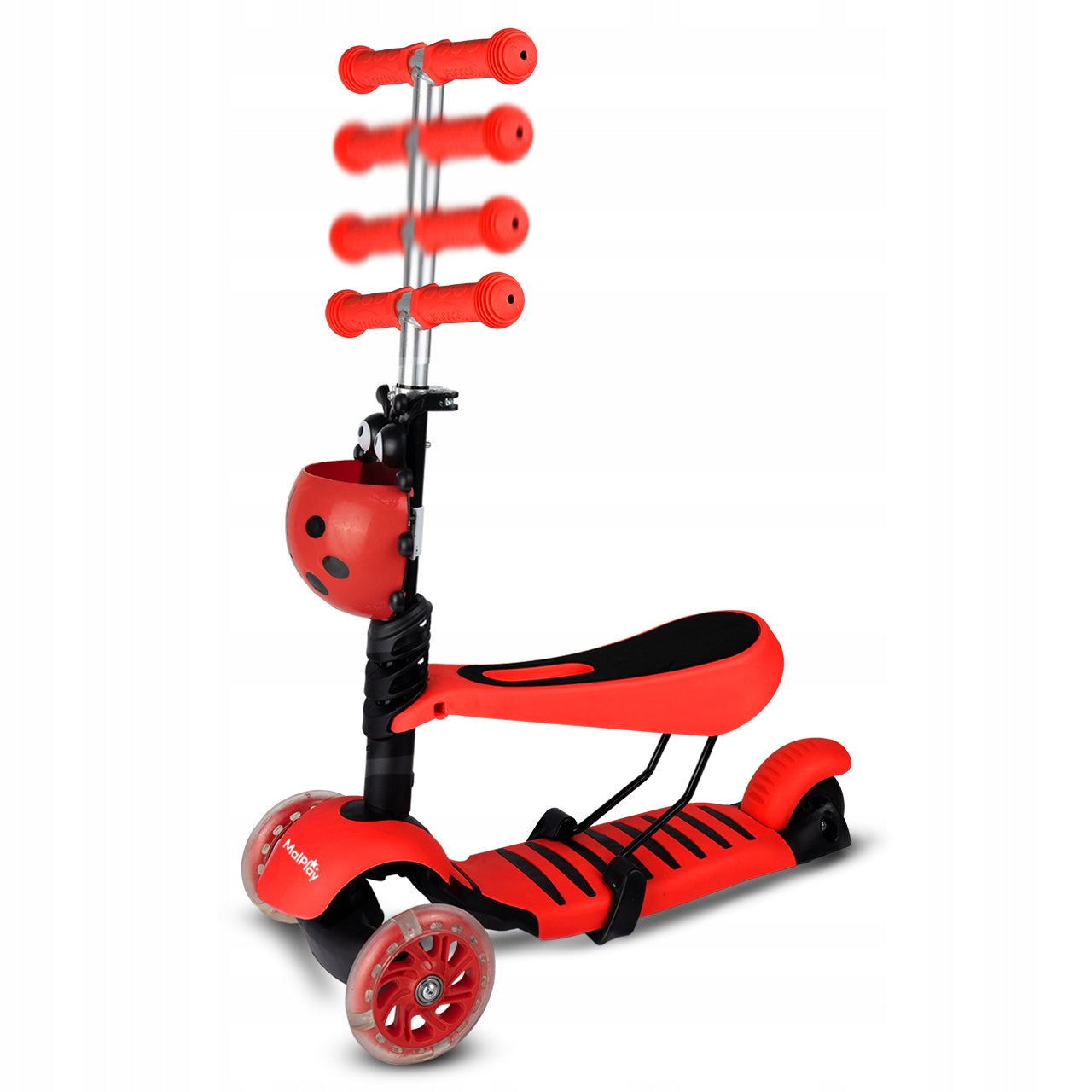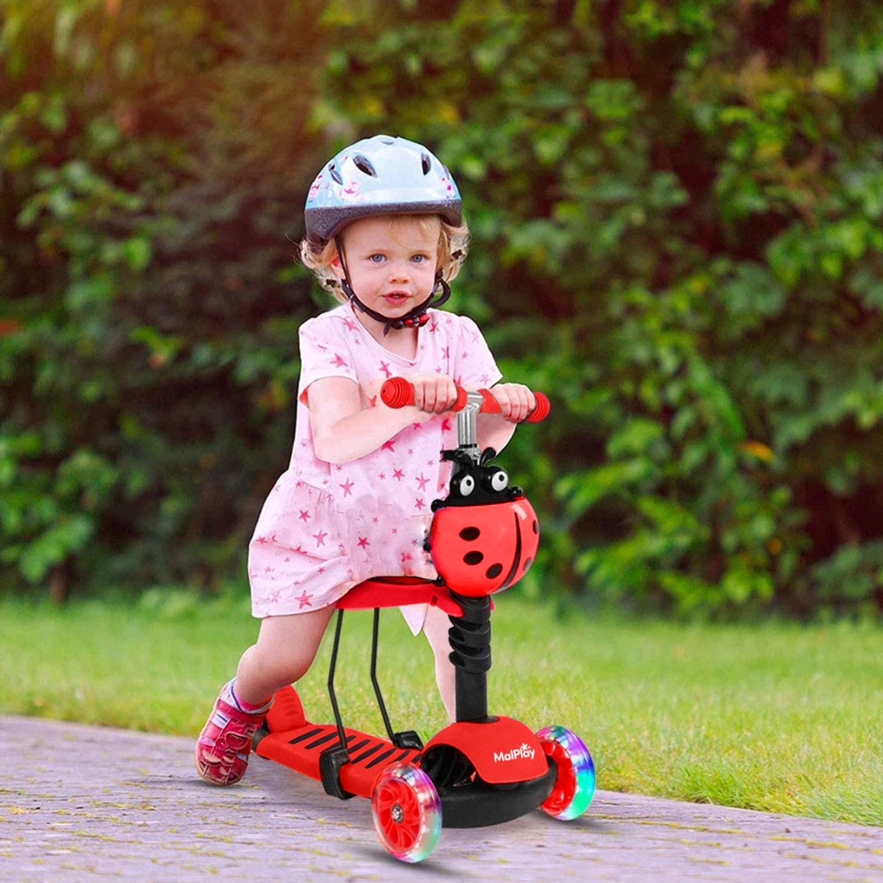 - - Atkreipia dėmesį: Ryškus boružėlės dizainas ir šviečiantys LED ratukai džiugina vaikus ir padidina jų matomumą.