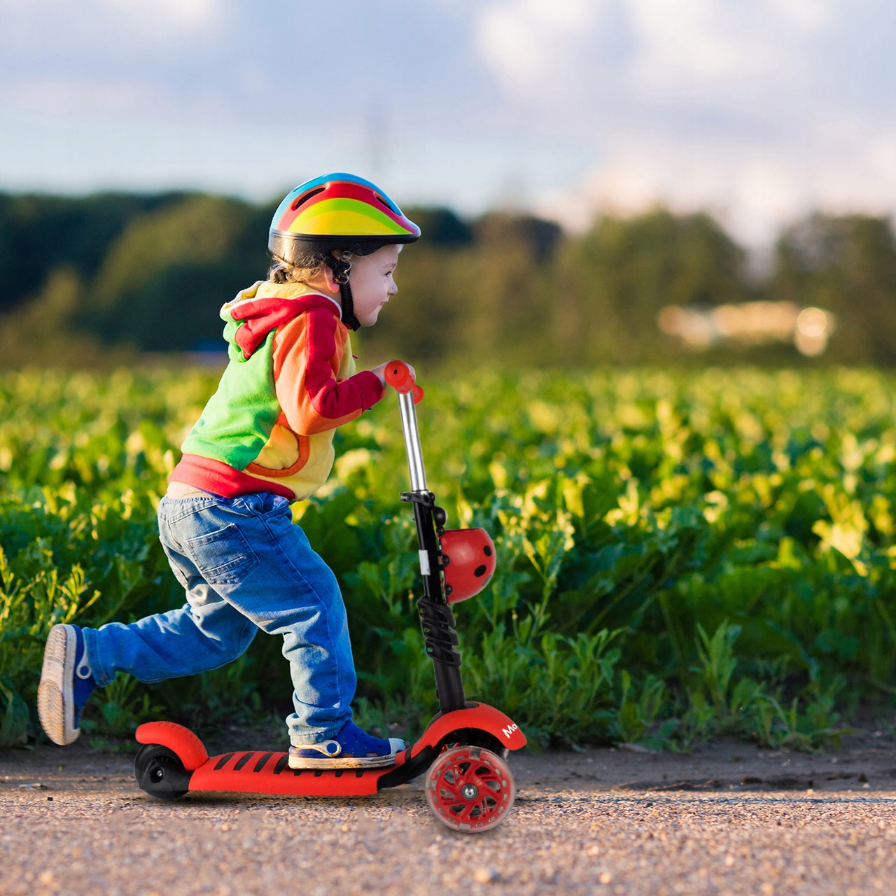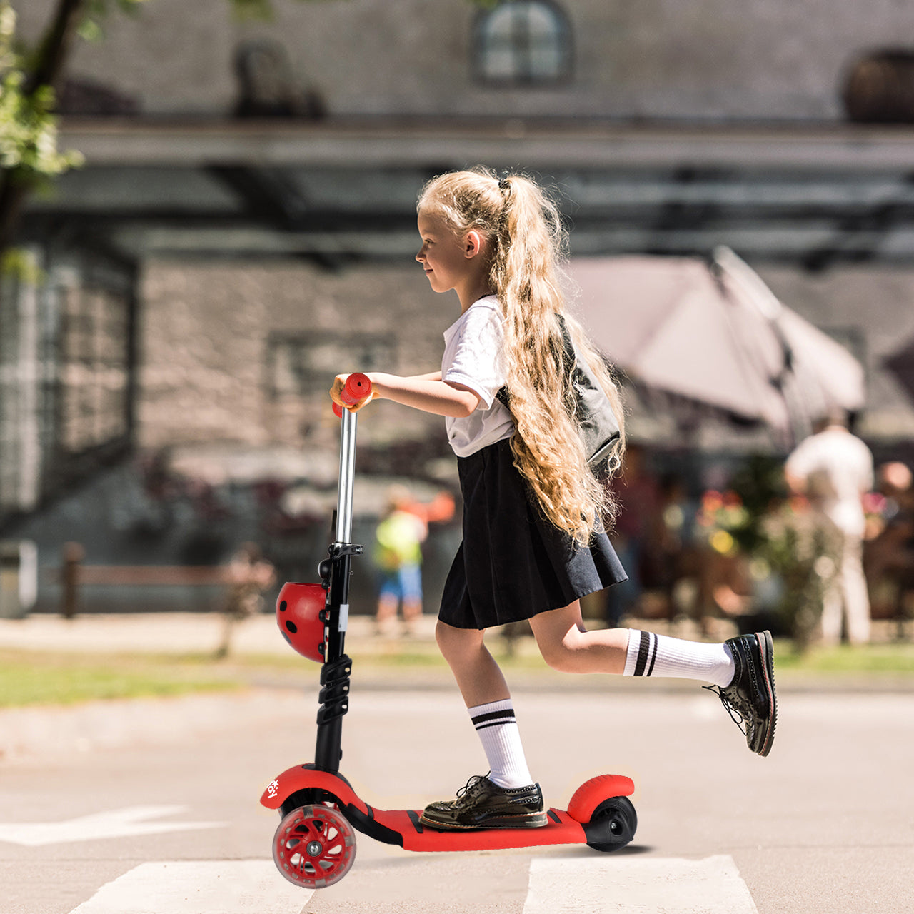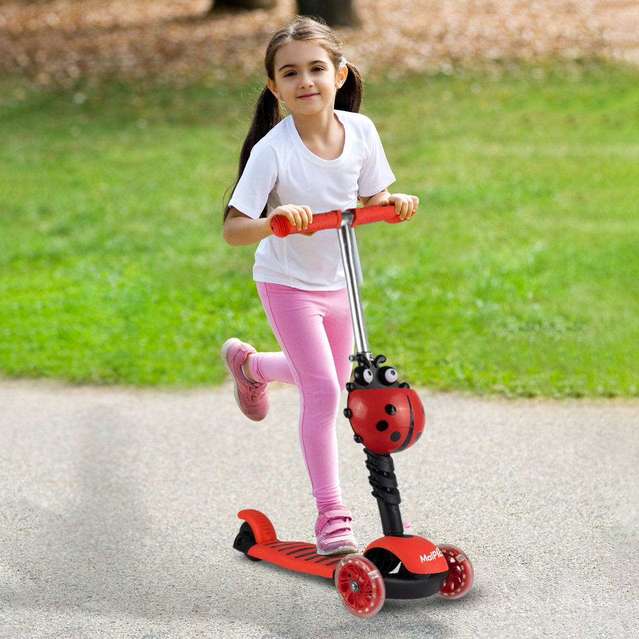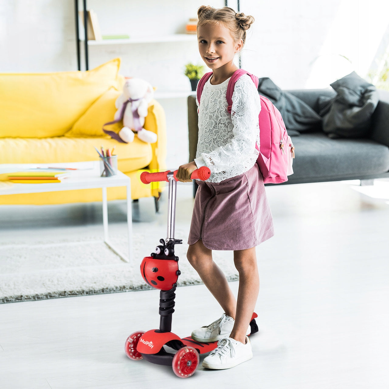 - - Atkreipia dėmesį: Ryškus boružėlės dizainas ir šviečiantys LED ratukai džiugina vaikus ir padidina jų matomumą.