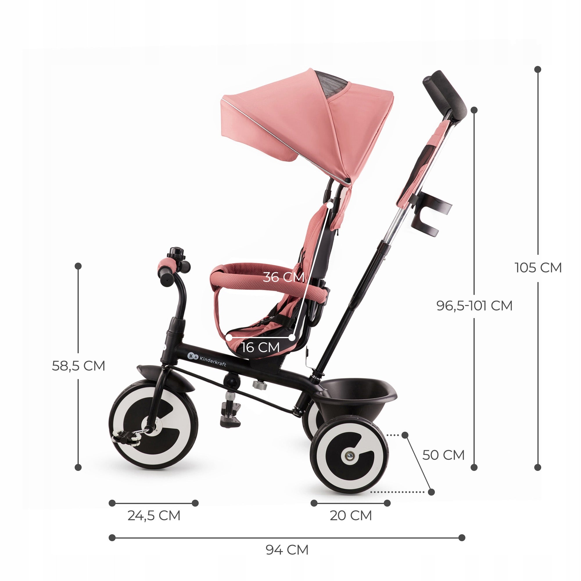 - Rožinis Kinderkraft ASTON 6-in-1 triratukas