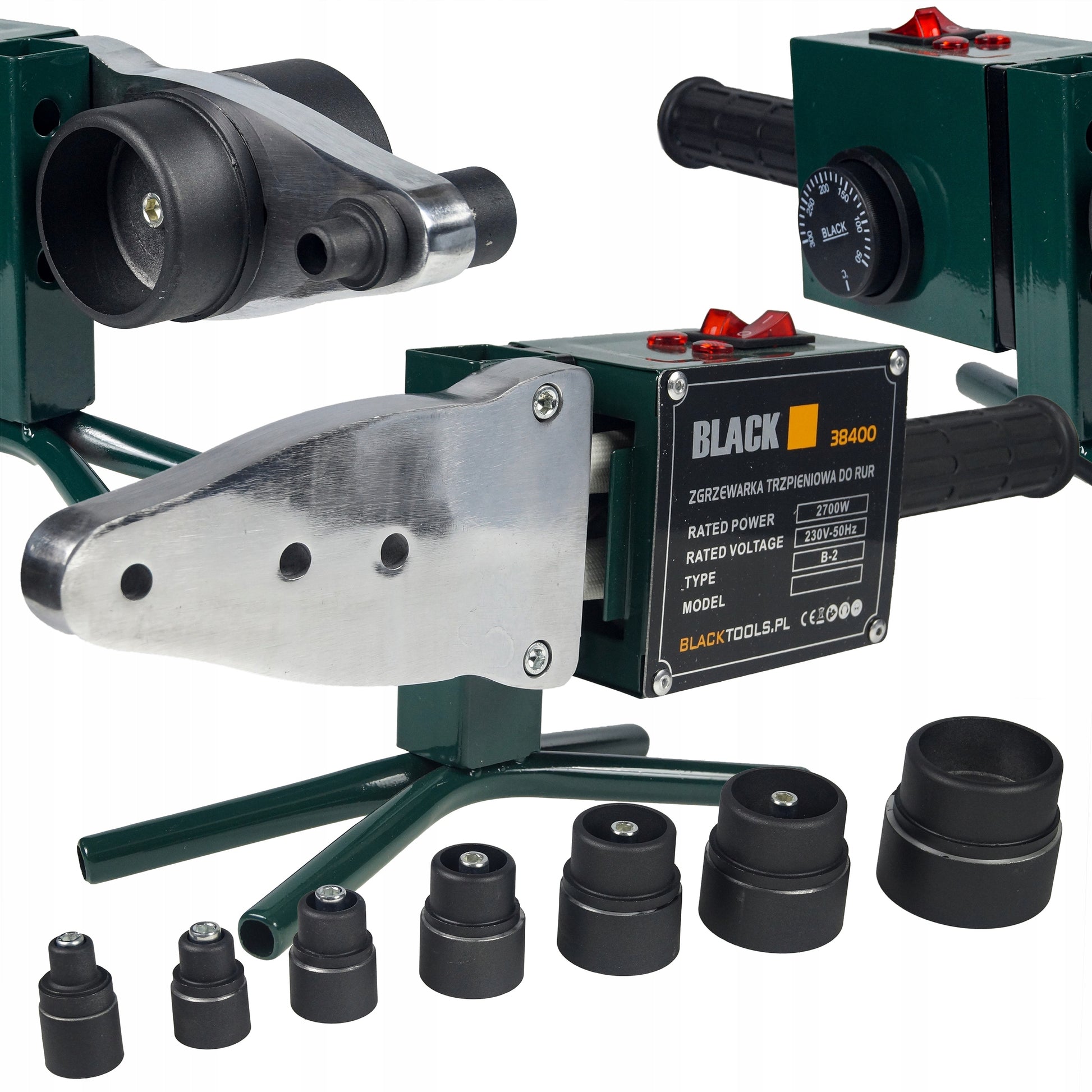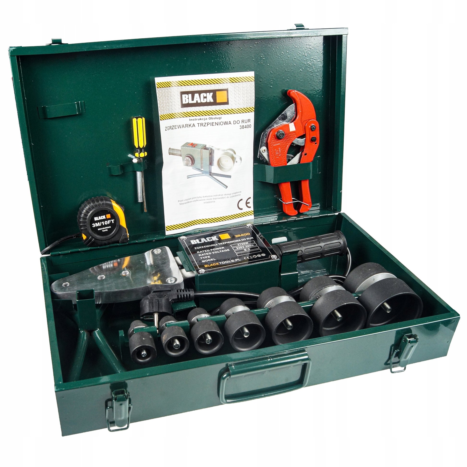Vamzdžių suvirinimo aparatas PP PVC 1500W, antgaliai 16-63, 7 antgaliai BLACK