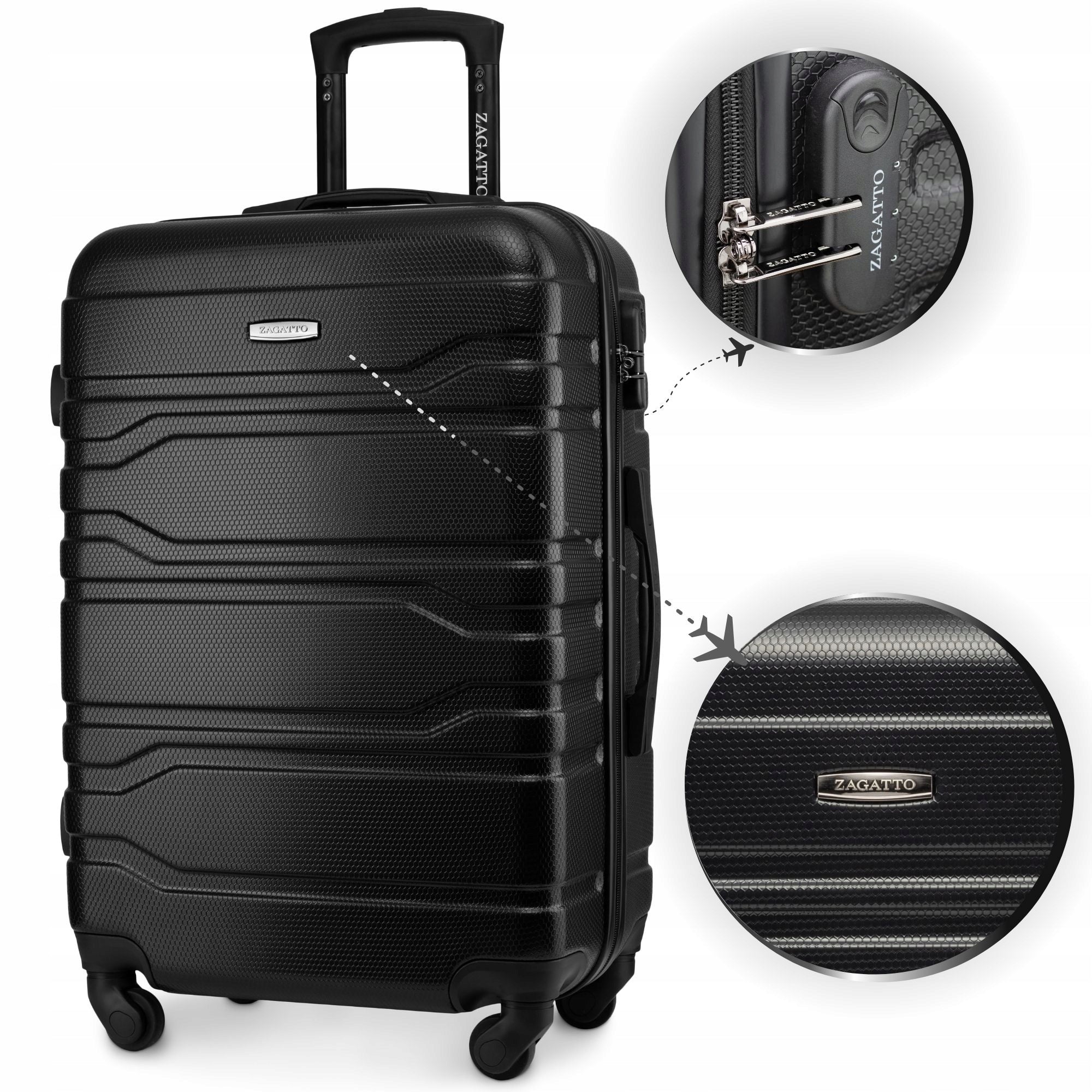 Šis ZAGATTO lagaminas yra sukurtas atsižvelgiant į keliautojų poreikius. ABS medžiaga pasižymi ne tik tvirtumu, bet ir atsparumu smūgiams, todėl jūsų daiktai bus saugūs net ir nepalankiomis sąlygomis. Sklandus, patvarus užtrauktukas su dvigubomis rankenėlėmis ir integruota kombinuota spyna suteikia papildomą saugumą kelionės metu. Vidinis pamušalas su subtiliu logotipu ir lėktuvų motyvais suteikia lagaminui stiliaus ir išskirtinumo. Ypač vertinga yra ir vidinė organizacija: lagamino vidus padalintas į dvi dalis. Viena pusė turi elastines diržus, kurie tvirtai prilaiko bagažą ir neleidžia jam slidinėti, o kita pusė užsegama atskiru užtrauktuku, užtikrinant tvarką ir lengvą daiktų prieigą.