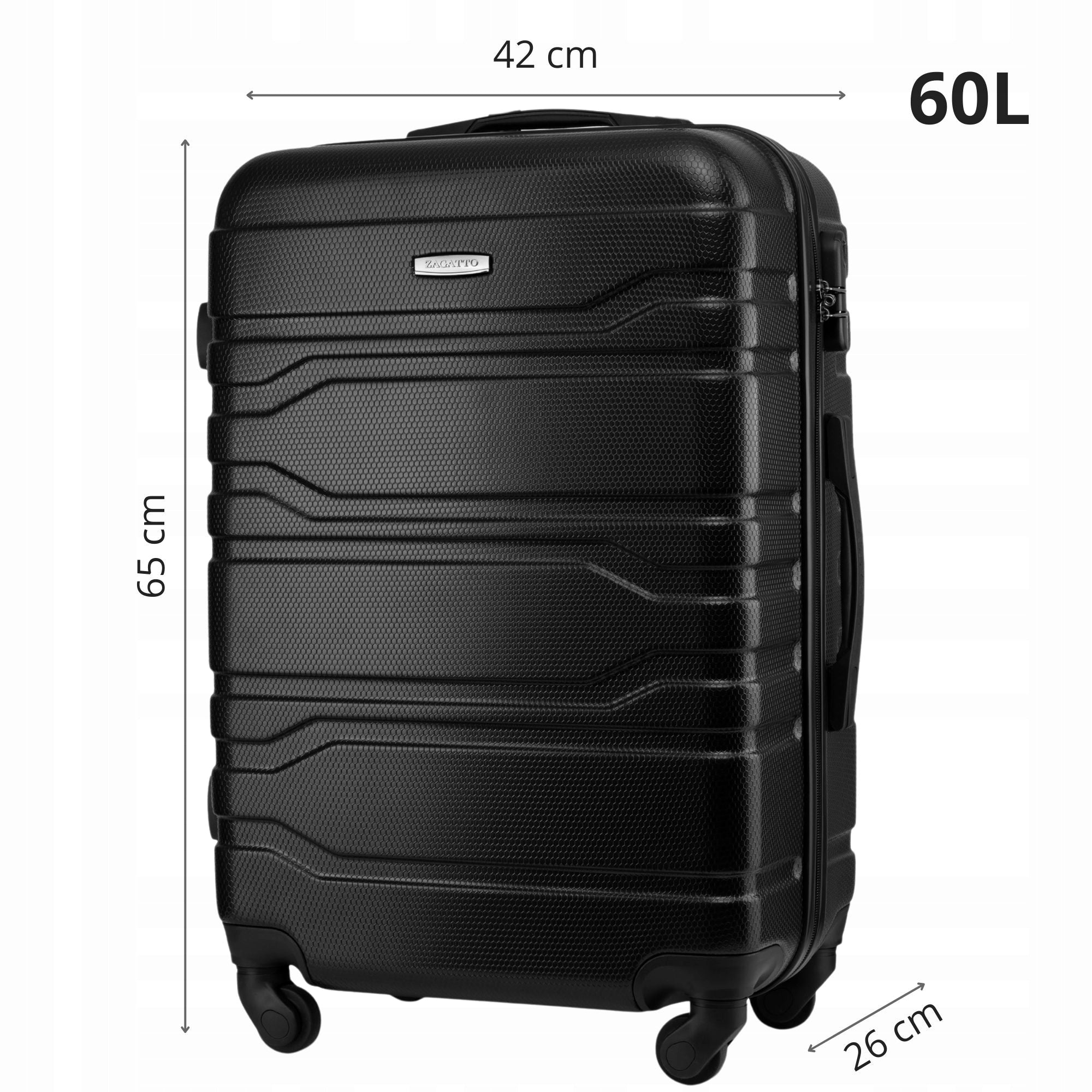 Pasiruoškite nepamirštamoms kelionėms su vidutinio dydžio kietuoju lagaminu ZAGATTO. Sukurtas atlaikyti laiką ir atstumus, šis 60 litrų talpos lagaminas yra puikus jūsų bagažo palydovas. Pagamintas iš aukštos kokybės ABS plastiko, jis užtikrina išskirtinį patvarumą ir apsaugą jūsų daiktams. Keturi 360 laipsnių kampu besisukantys ratukai leidžia itin lengvai manevruoti net ir didžiausiose miniose, o patogios viršutinės ir šoninės rankenos suteikia papildomo komforto jį keliant ar nešant. Aliuminio teleskopinė rankena su reguliuojamu aukščiu garantuoja, kad lagaminą bus patogu stumti bet kokio ūgio keliautojui.
