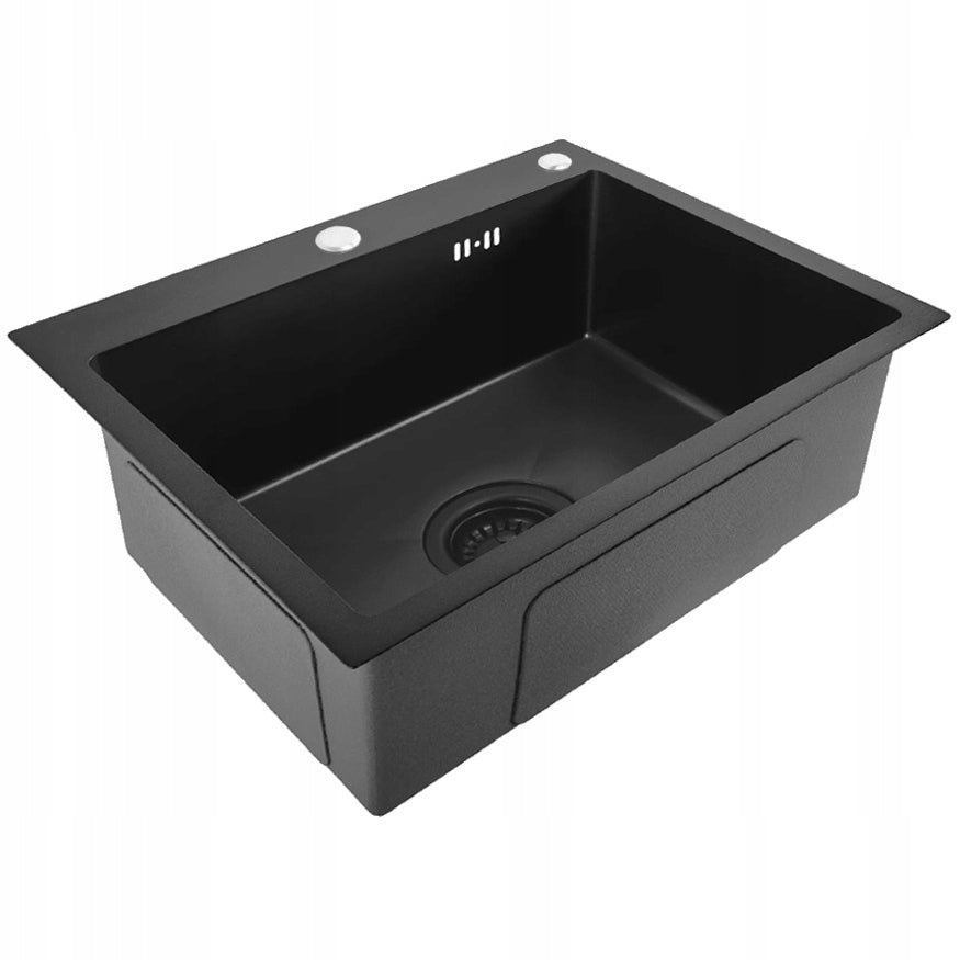Vienos kameros virtuvinė plieninė plautuvė juoda REA LIAM 45 cm