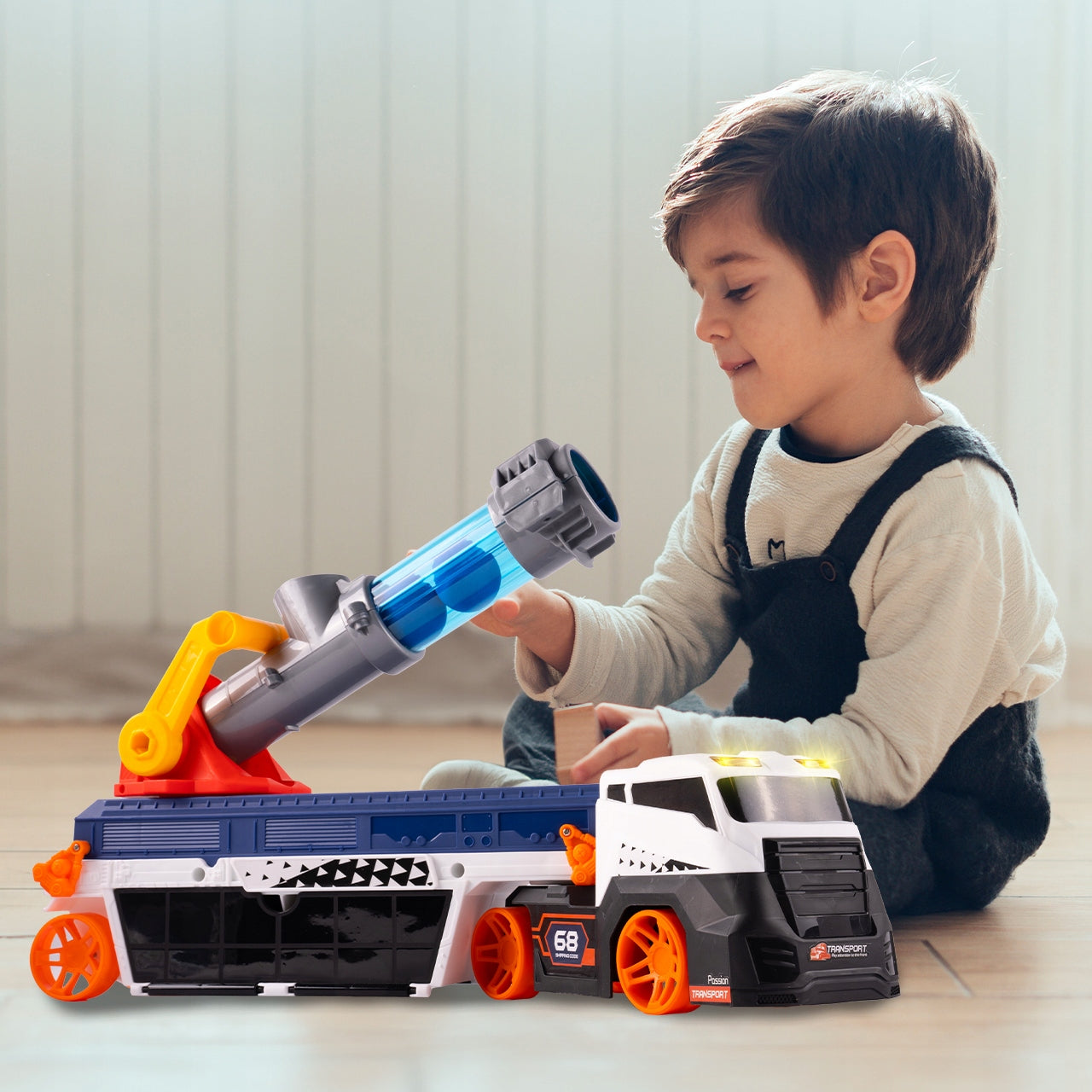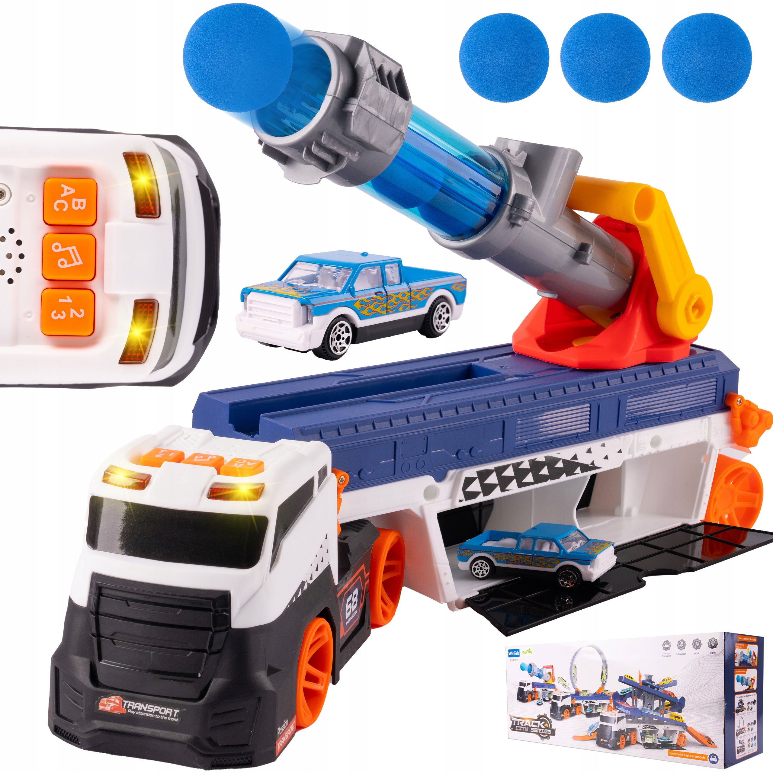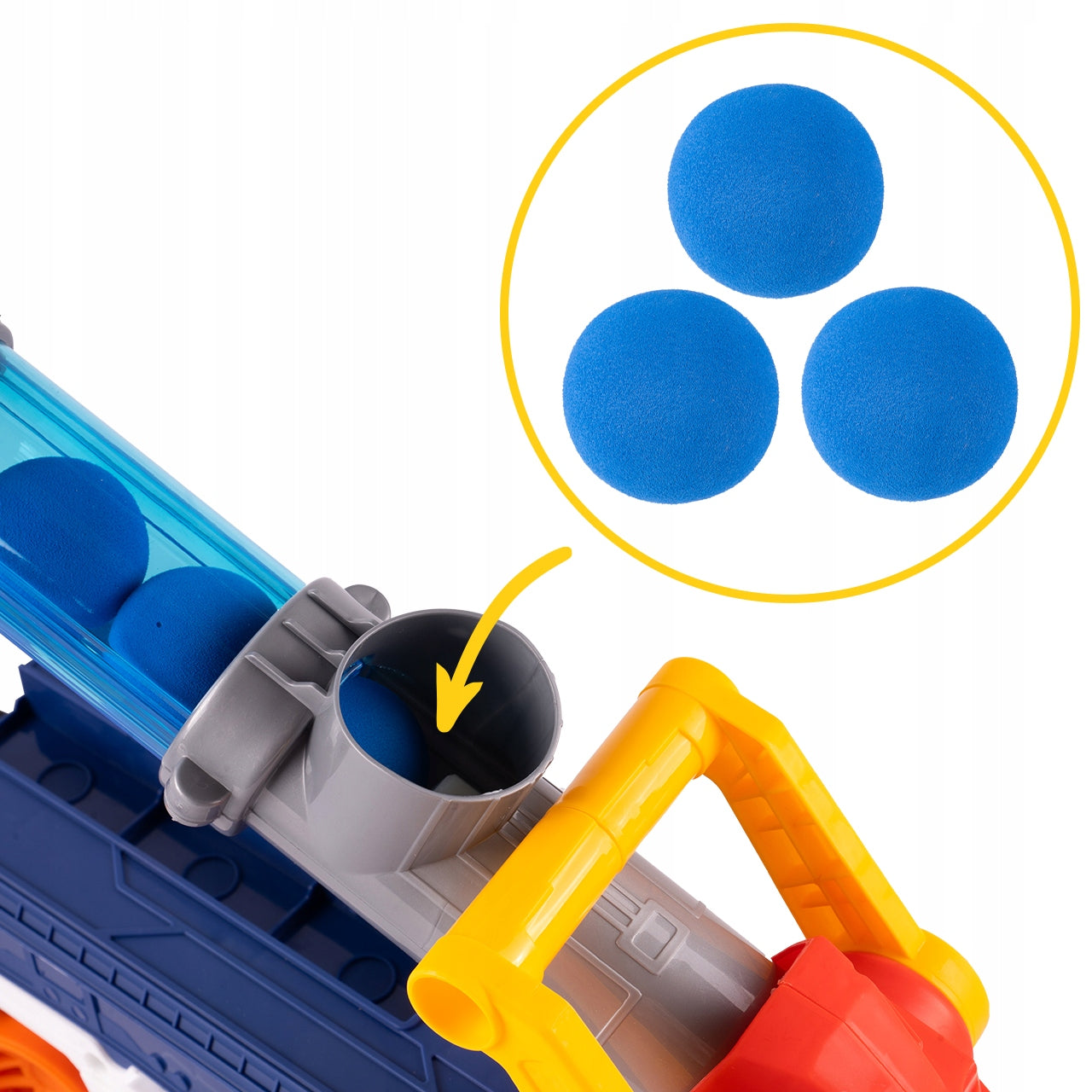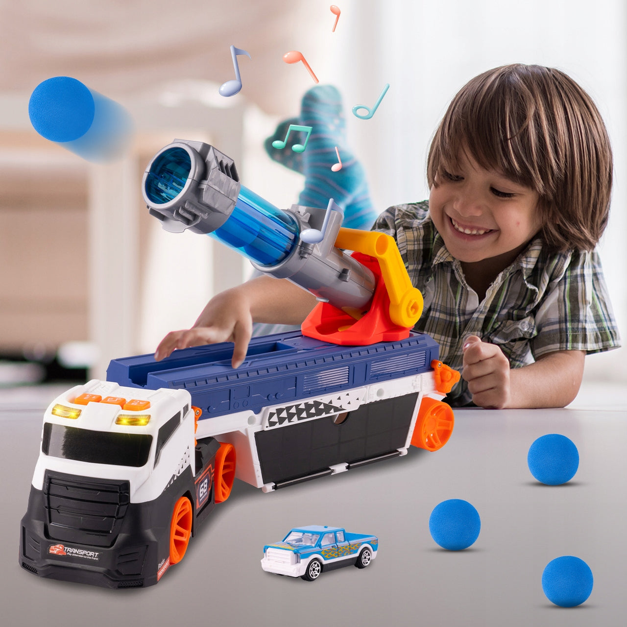 Šis sunkvežimis siūlo du žaidimo režimus: iššauti kamuoliukus arba mažus automobiliukus. Viskas, ko reikia, yra vienas mygtuko paspaudimas, ir vaikas gali pradėti aktyvų žaidimą. Tai ne tik smagu, bet ir lavina vaiko taiklumą bei koncentraciją, mokydama jį atlikti tikslius judesius. Žaislas turi reguliuojamą paleidimo įtaisą, kurį galima judinti vertikaliai ir horizontaliai, suteikiant vaikui daugiau kontrolės ir galimybių siekti įvairių taikinių. Žaidžiant su šia transporto priemone, vaikai mokosi koordinacijos, rankų ir akių sąveikos bei erdvinio mąstymo.