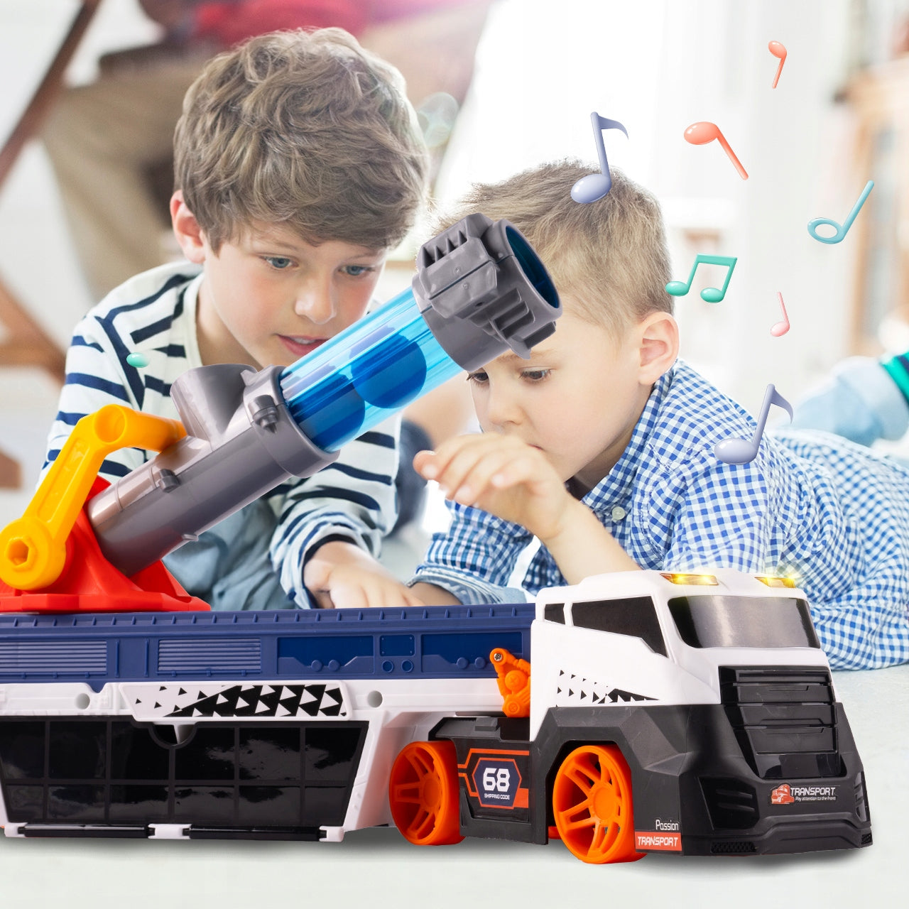 Atidarykite vaikų fantazijos pasaulį su šia inovatyvia ir interaktyvia žaisline transporto priemone! Šis įspūdingas sunkvežimis su dviguba funkcija – tai ne tik transporto priemonė, bet ir linksmas paleidimo įtaisas, gebantis iššauti tiek mažus automobiliukus, tiek minkštus kamuoliukus. Sukurta skatinti kūrybiškumą ir lavinti smulkiąją motoriką, ši žaislo transporto priemonė greitai taps jūsų vaiko mėgstamiausia pramoga. Su šviesos ir garso efektais, žaislas suteikia dar daugiau realistiškumo ir įtraukiančios patirties žaidžiant.