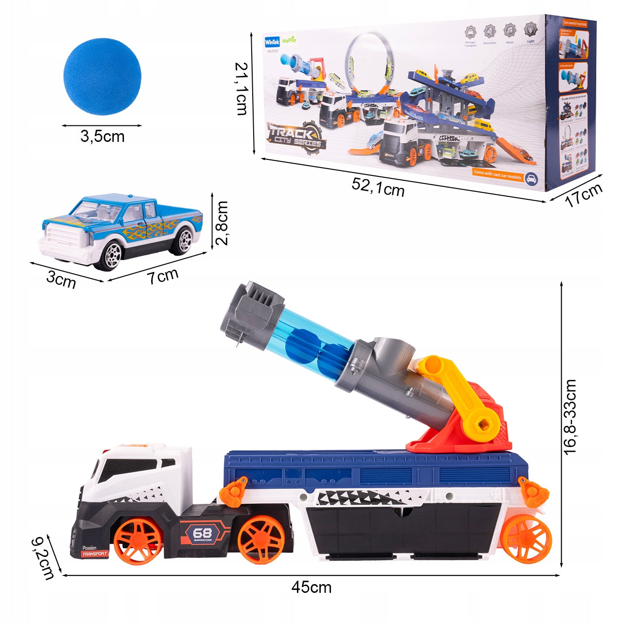 - 1x Sunkvežimis su kamuoliukų ir automobiliukų paleidimo įtaisu