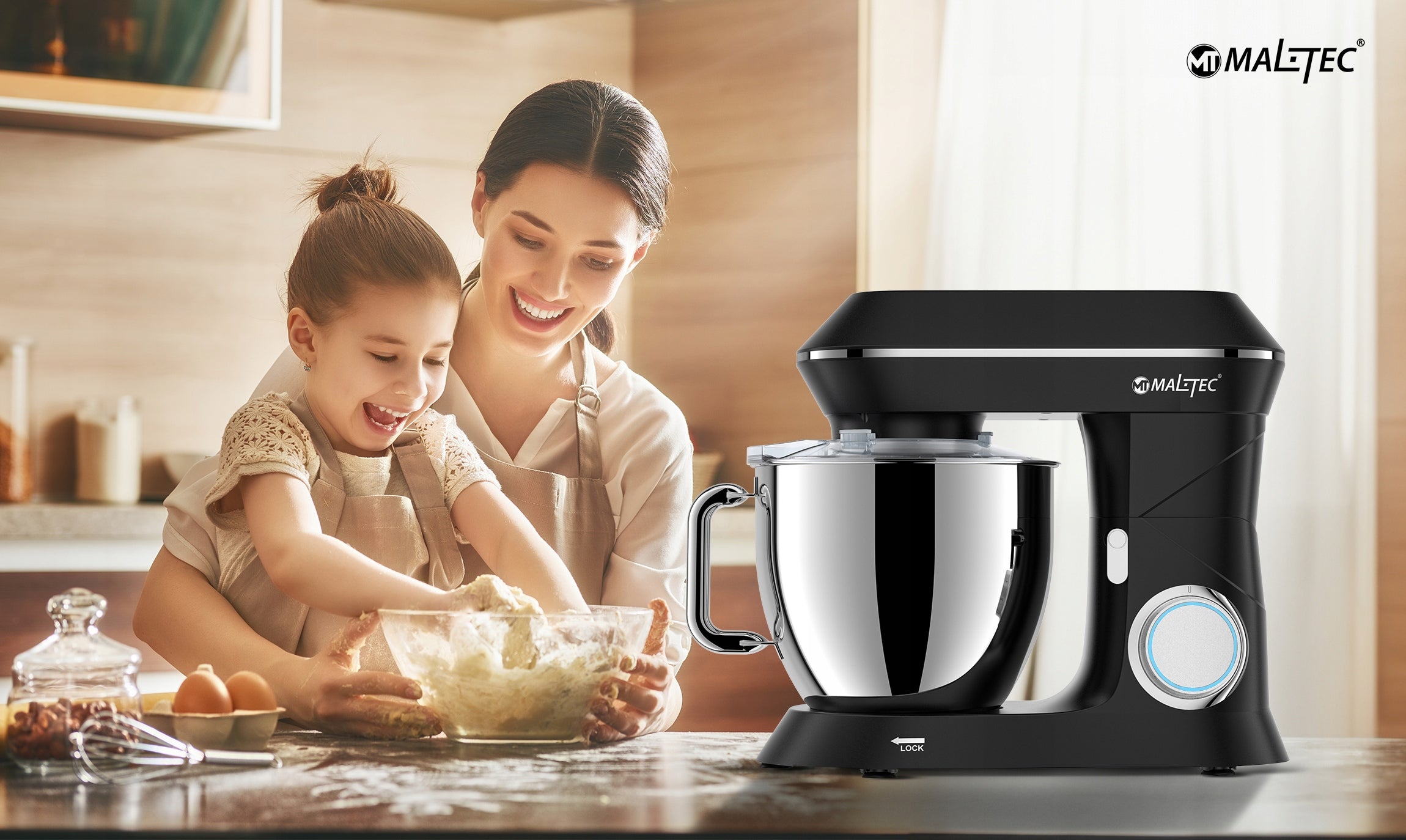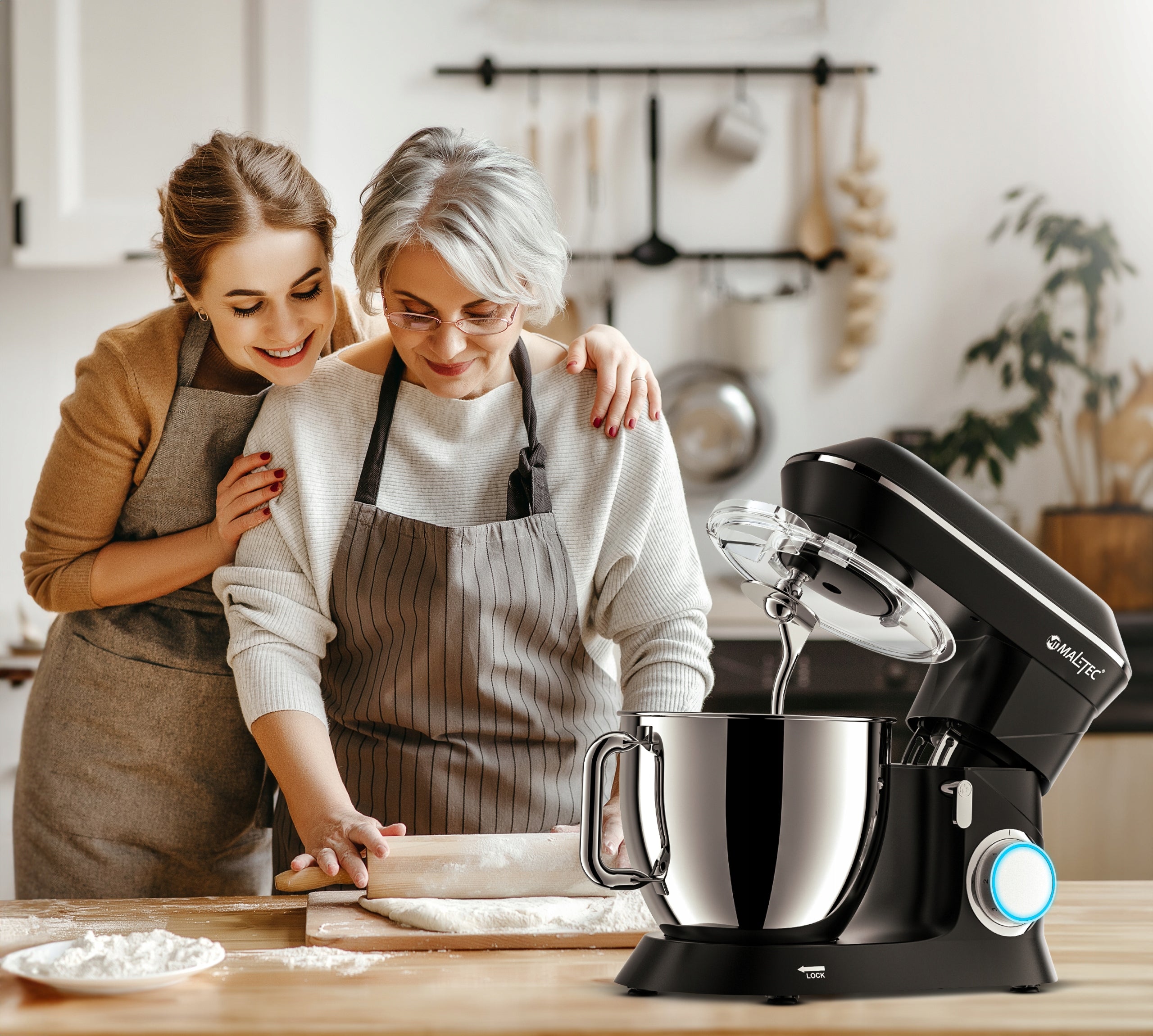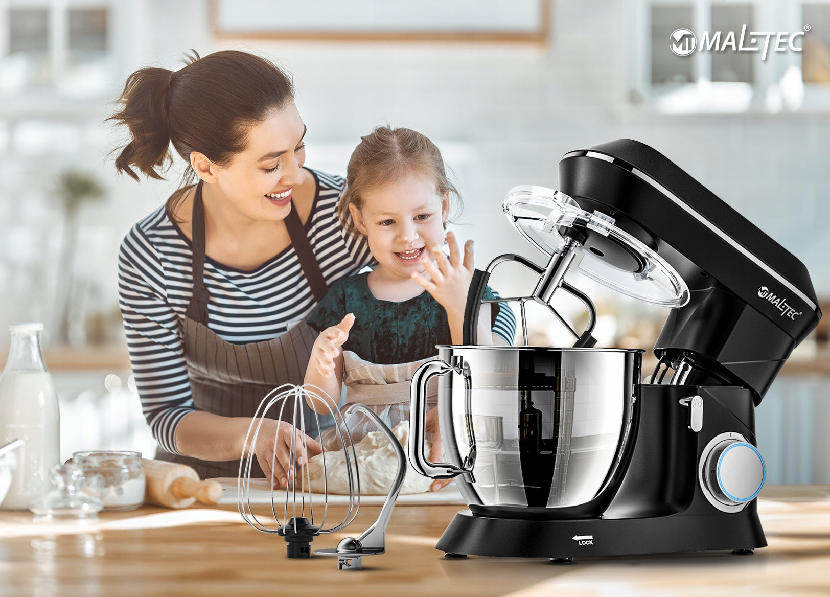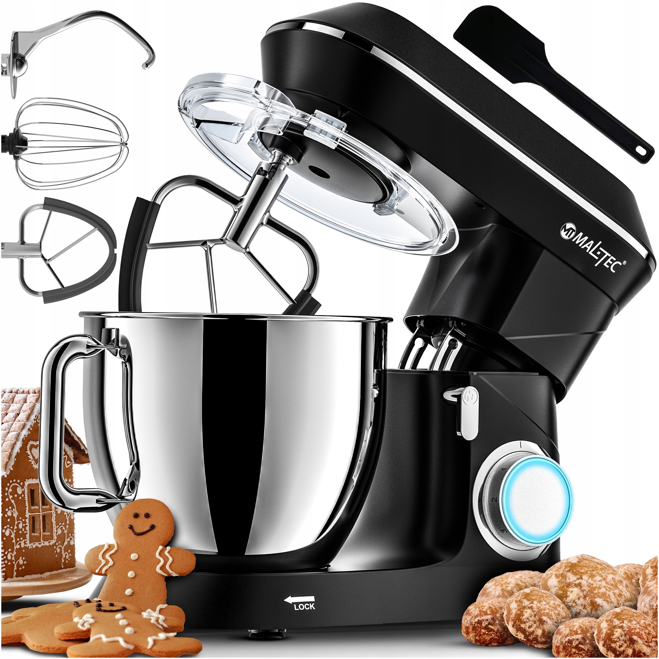 - Galingumas ir Efektyvumas: 2000W variklis su varinėmis apvijomis užtikrina greitą ir efektyvų darbą net su kieta tešla.
