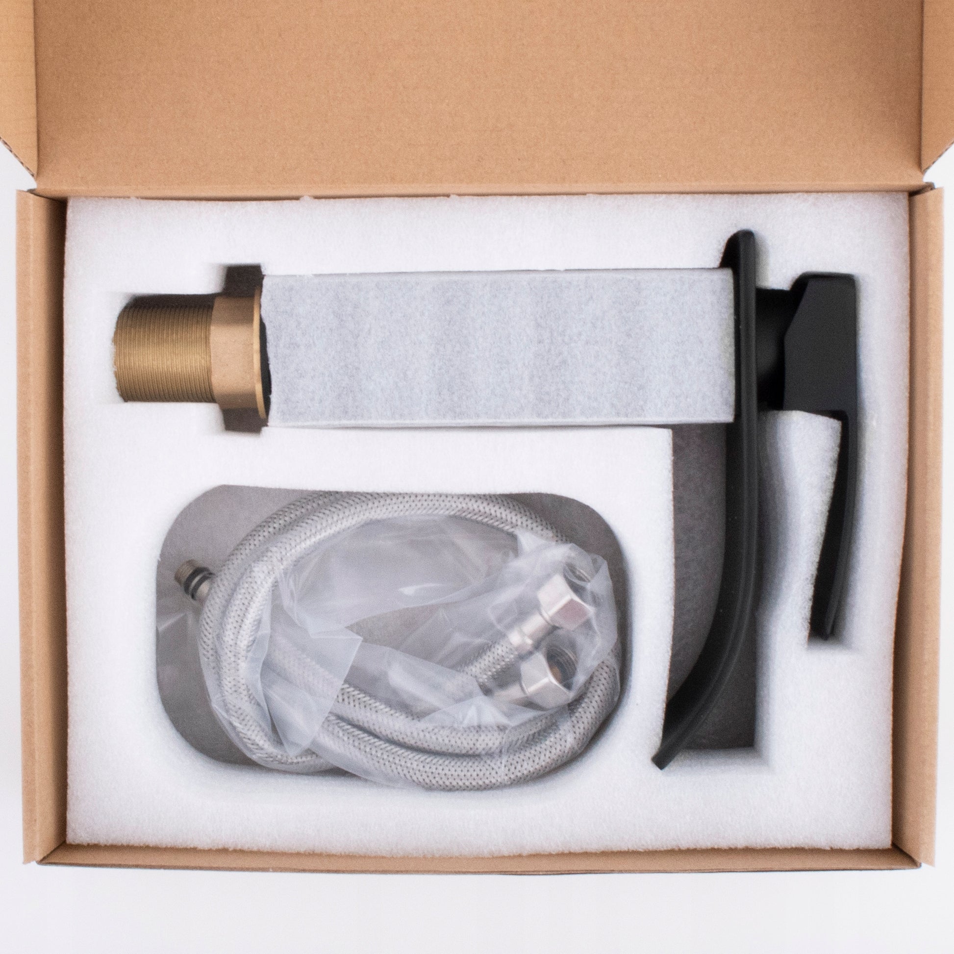 Snapelis sukuria krioklio efektą. Maišytuvo korpusas pagamintas iš žalvario. Komplekte yra 2 aukštos kokybės 50 cm ilgio nerūdijančio plieno žarnos su standartine 3/8 colių jungtimi ir montavimo priedai.