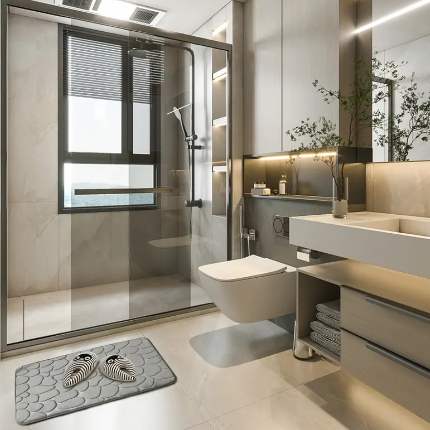Pristatome naująjį pilkos spalvos vonios, miegamojo kilimėlį, kuris ne tik papuoš jūsų vonios ar miegamojo kambarį moderniu akcentu, bet taip pat suteiks jums nepakartojamą minkštumą ir saugumą.