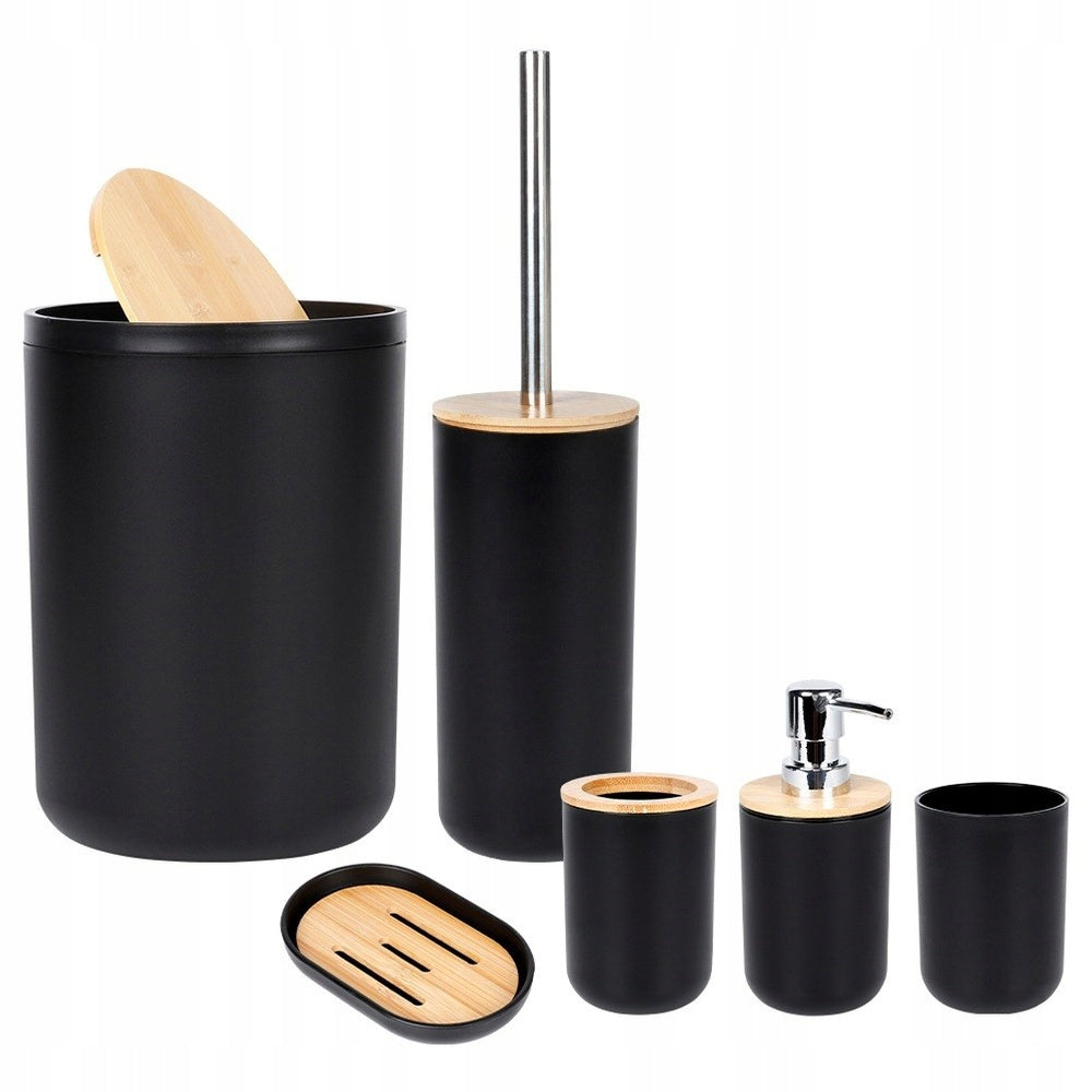 Šis išskirtinis vonios reikmenų rinkinys pagamintas iš aukščiausios klasės, matinės juodos spalvos plastiko, papildyto natūralaus bambuko medienos detalėmis. Šis derinys suteikia voniai jaukumo ir prabangos, lengvai derėdamas prie įvairių interjero stilių. Tvirtos medžiagos užtikrina ilgaamžiškumą, o kruopšti gamyba – nepriekaištingą išvaizdą ilgus metus. Subtilus dizainas ir natūralios medžiagos sąveika sukuria harmoningą ir ramią atmosferą jūsų šventovėje.