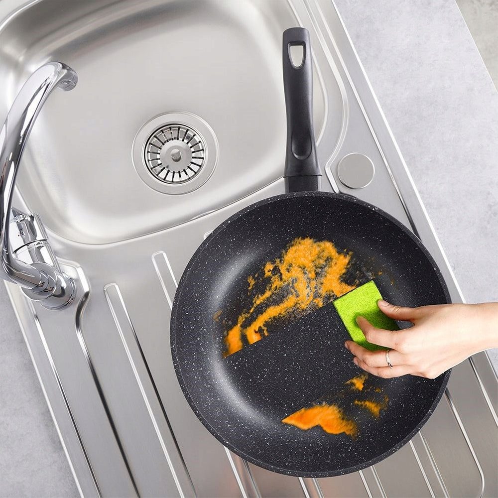 ORION GRANDE wok keptuvė išsiskiria aukščiausios kokybės neslidžiu granito paviršiumi, kuris garantuoja, kad maistas niekada neprilips. Tai leidžia ruošti sveikesnius patiekalus, naudojant minimalų kiekį riebalų ar net visai be jų. Aliuminio korpusas užtikrina tolygų ir greitą karščio pasiskirstymą visame paviršiuje, todėl jūsų patiekalai bus tobulai iškepti ir nepridegę. Ši danga yra visiškai saugi jūsų sveikatai, nes joje nėra kenksmingų PFOA ir PTFE medžiagų. Galėsite mėgautis ne tik puikiu skoniu, bet ir tuo, kad maistas bus paruoštas optimaliai, išlaikant visas maistines savybes. Tai nepamainoma priemonė norintiems maitintis skaniai ir sveikai kasdien, ruošiant tiek greitus pusryčius, tiek išskirtinius vakarienės patiekalus.