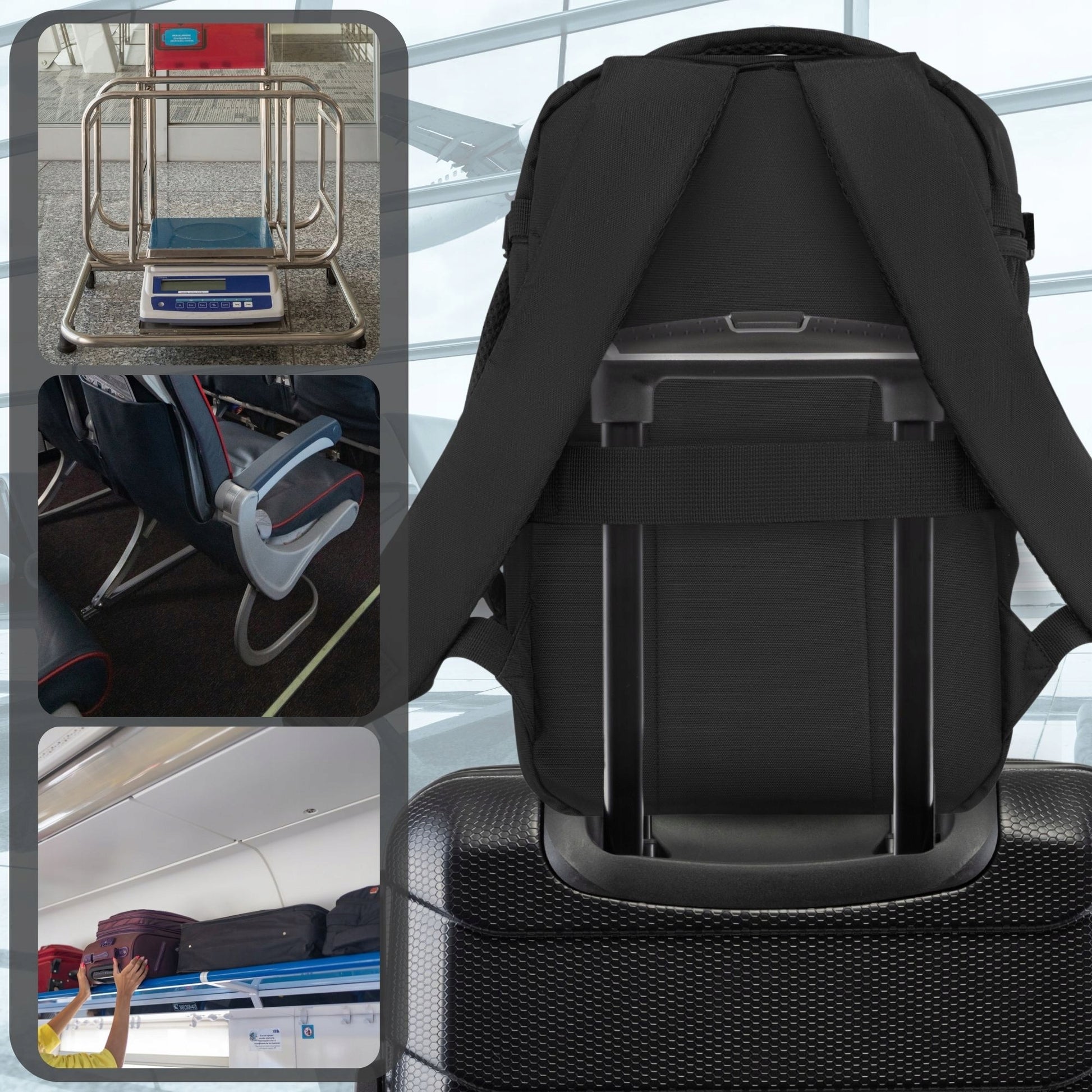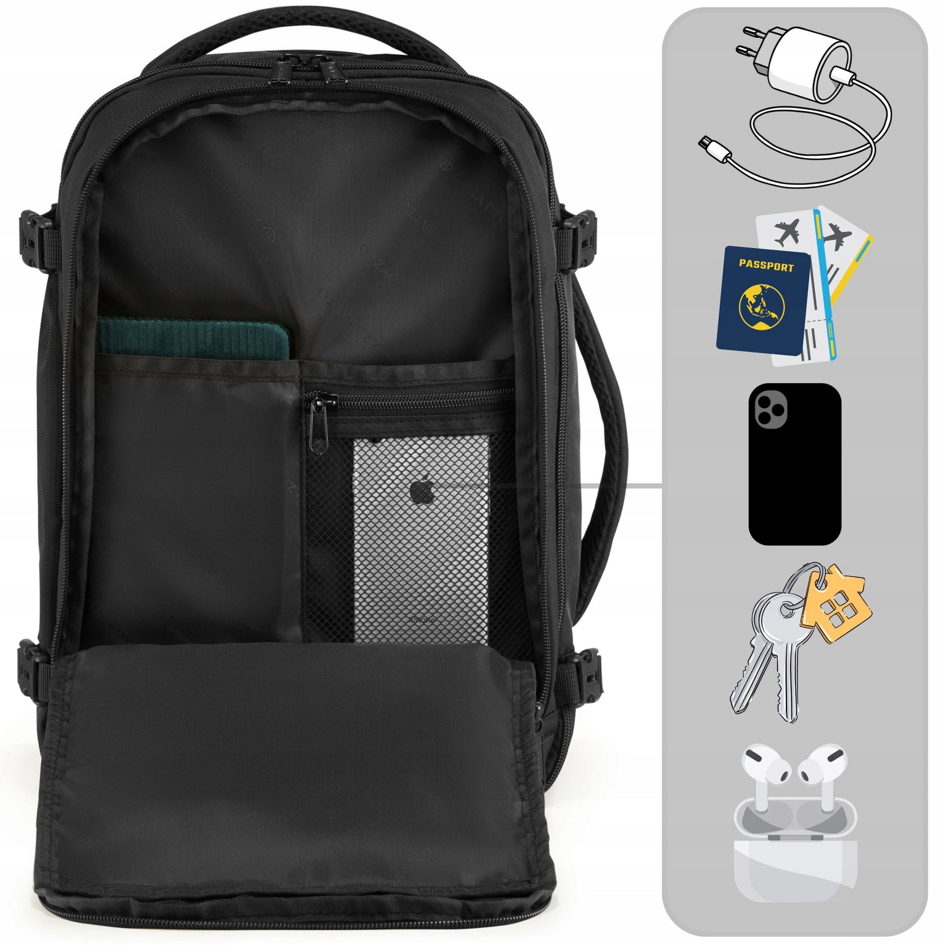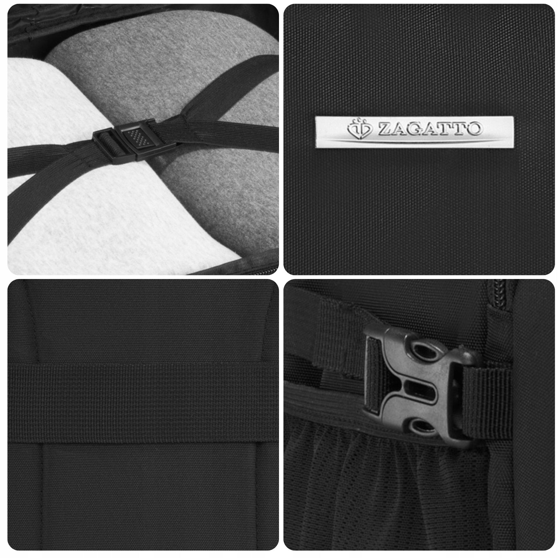 ZAGATTO juoda kelioninė kuprinė lėktuvui 40x25x20 – rankinis bagažas Ryanair Wizzair